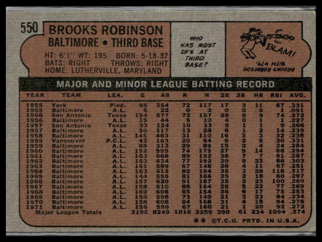 Brooks Robinson #550 1972 Topps Baltimore Orioles