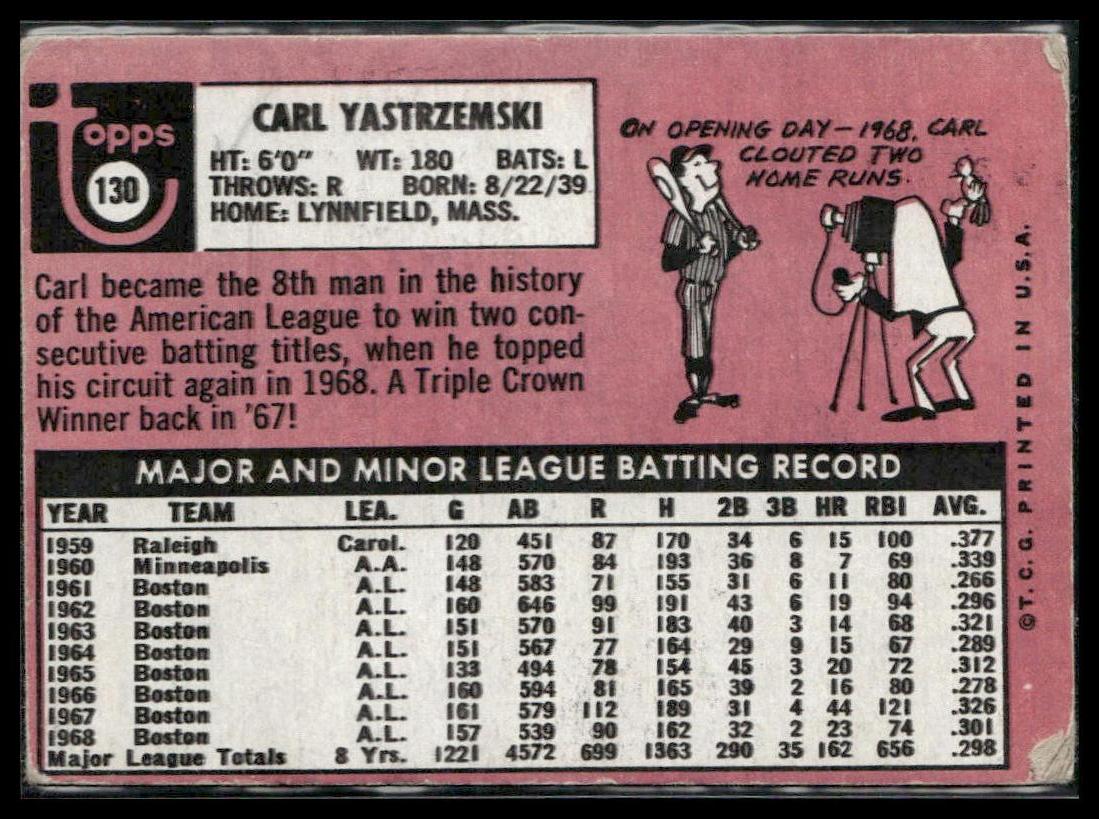 Carl Yastrzemski #130 1969 Topps Boston Red Sox