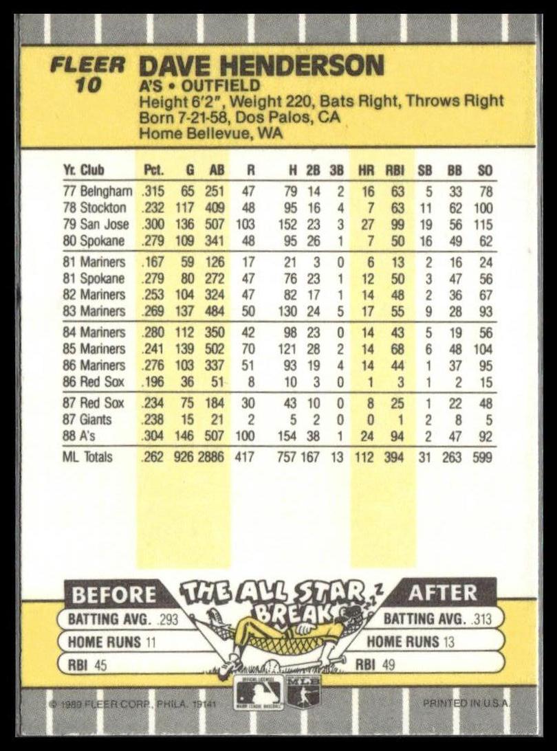 Dave Henderson #10 1989 Fleer Auto Oakland Athletics
