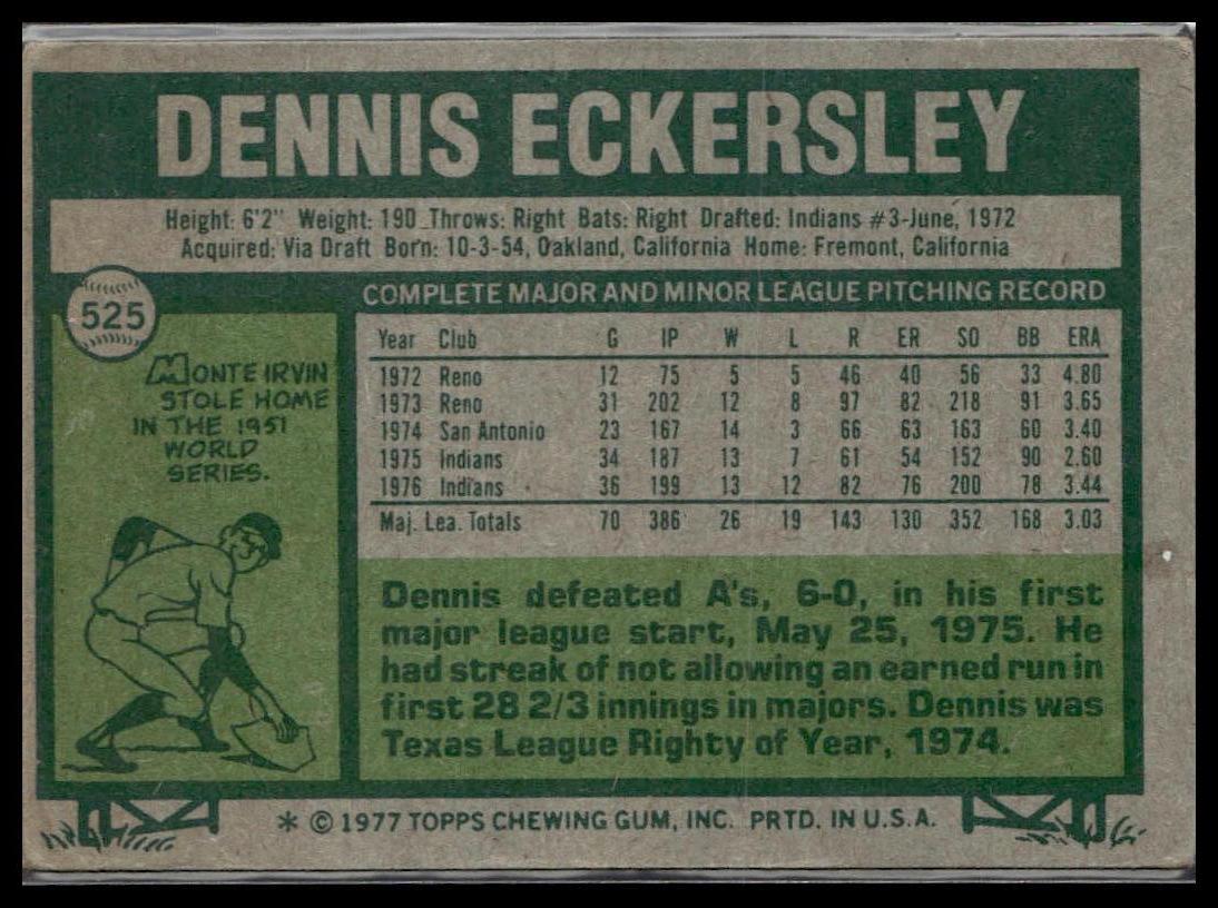 Dennis Eckersley #525 1977 Topps Cleveland Indians