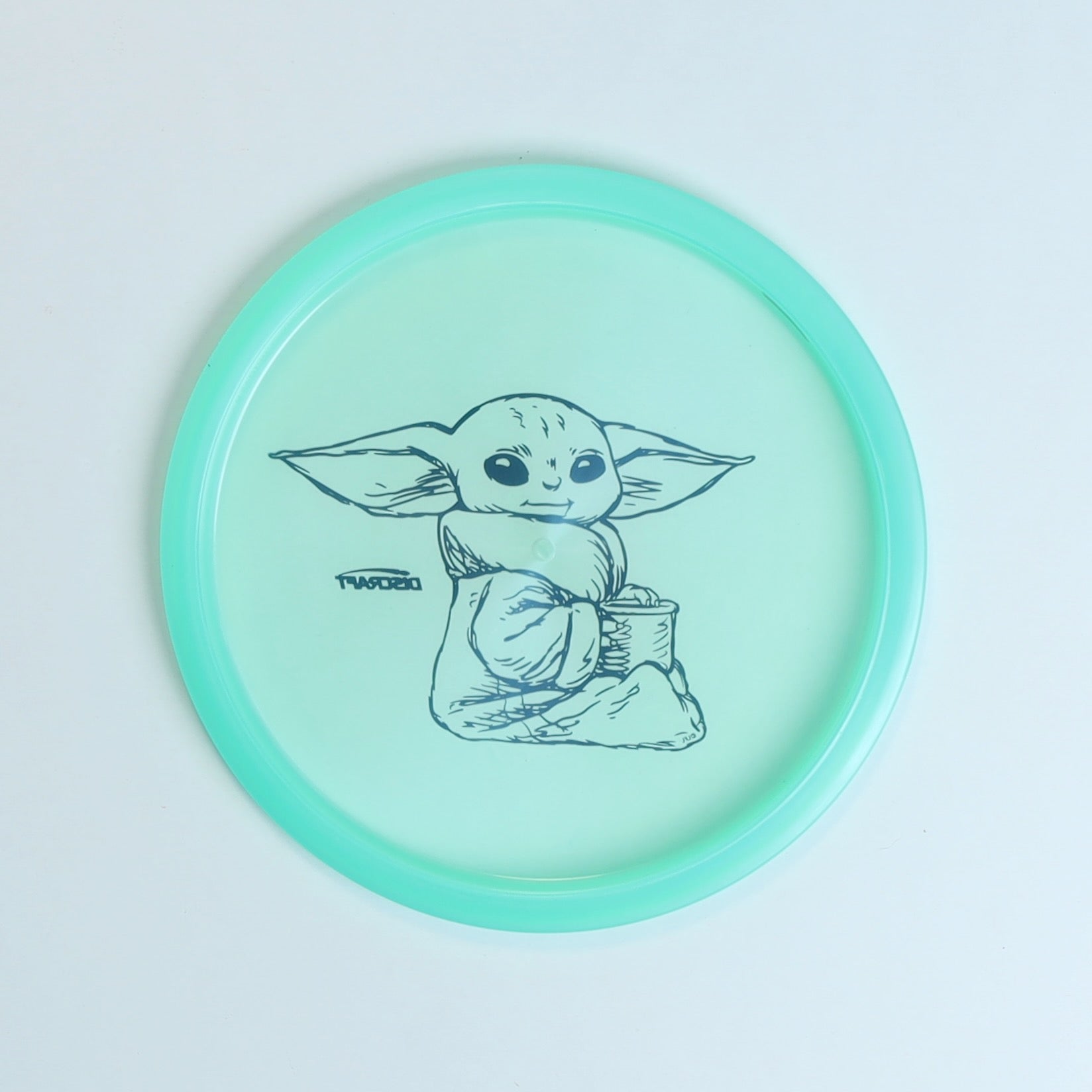 Description This is a special edition Discraft Buzzz midrange disc featuring a custom Baby Yoda (Grogu) stamp. With its reliable flight and exclusive design, this disc is perfect for collectors and players alike. The disc comes in a translucent mint plastic and showcases the iconic character holding a cup.