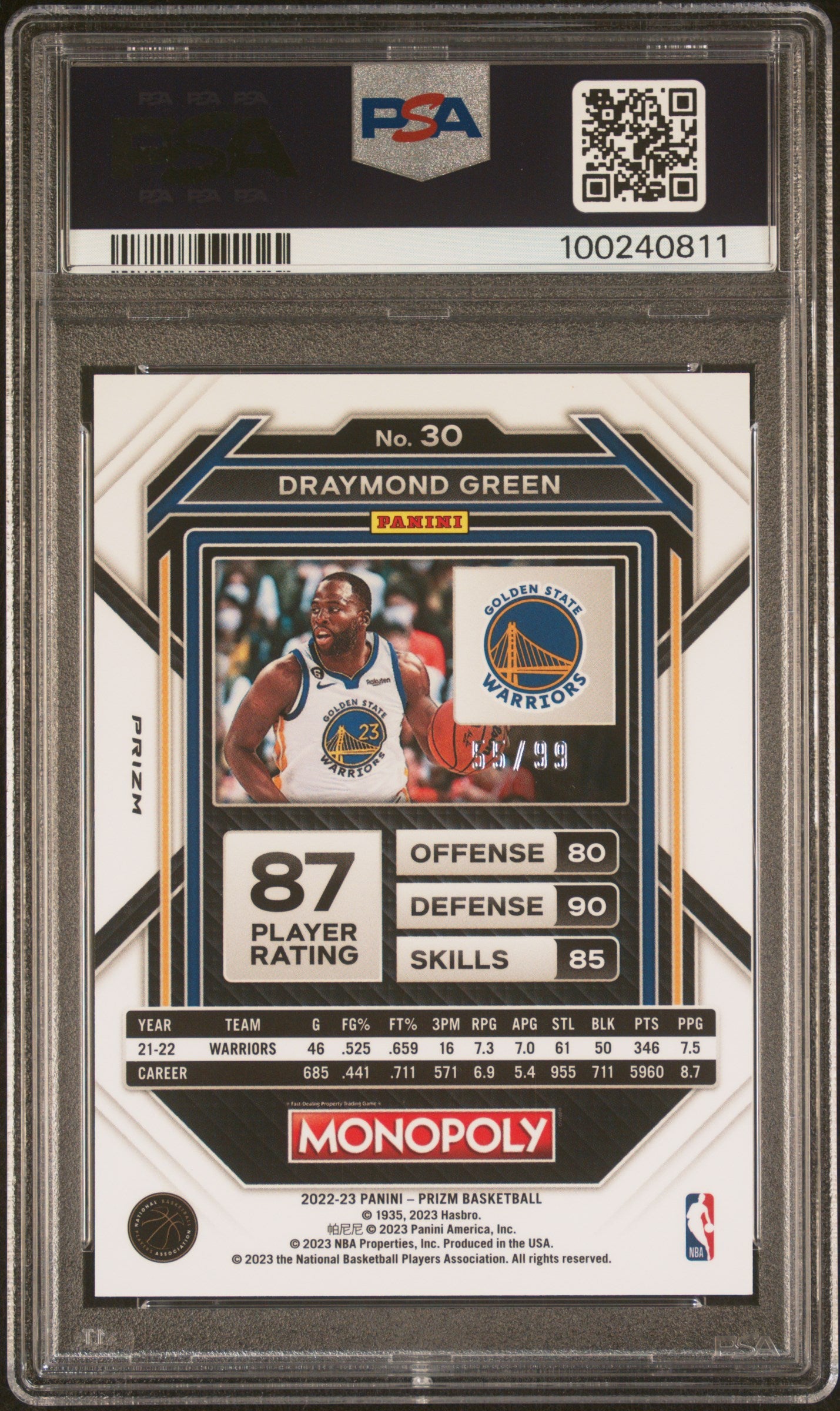 Draymond Green #30 2022 Panini Prizm Monopoly Red Golden State Warriors PSA 8