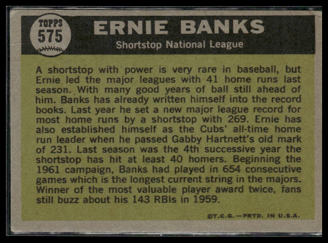 Ernie Banks #575 1961 Topps Chicago Cubs
