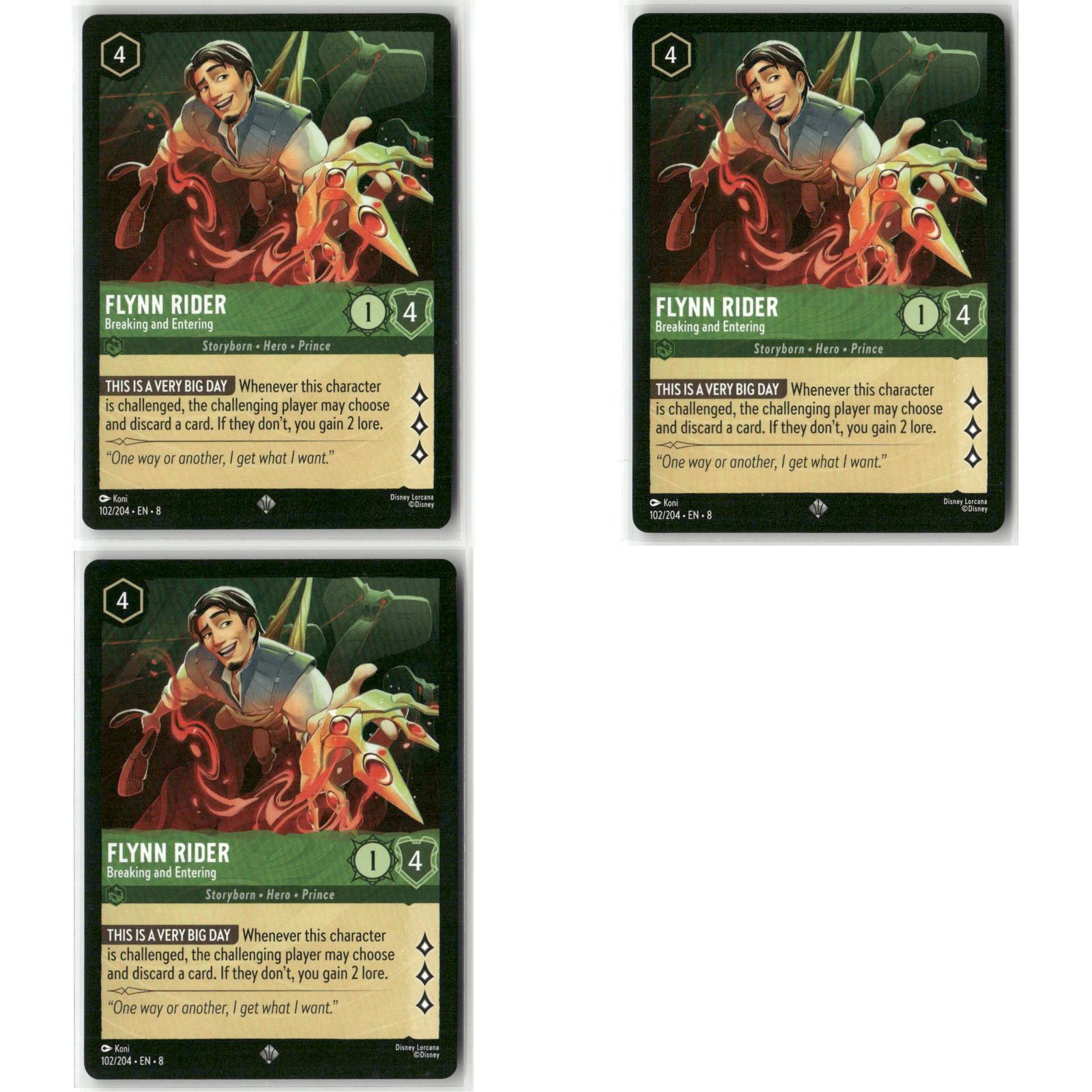 Flynn Rider - Breaking and Entering #102 3 Card Lot Super Rare Disney Lorcana