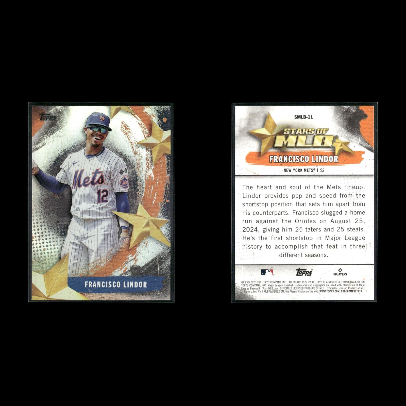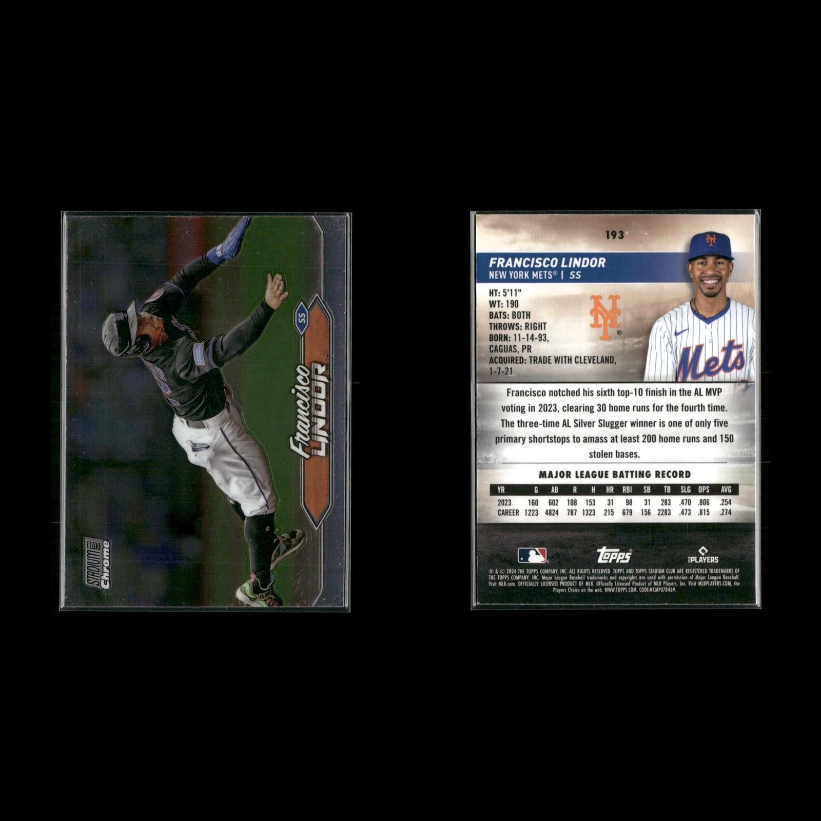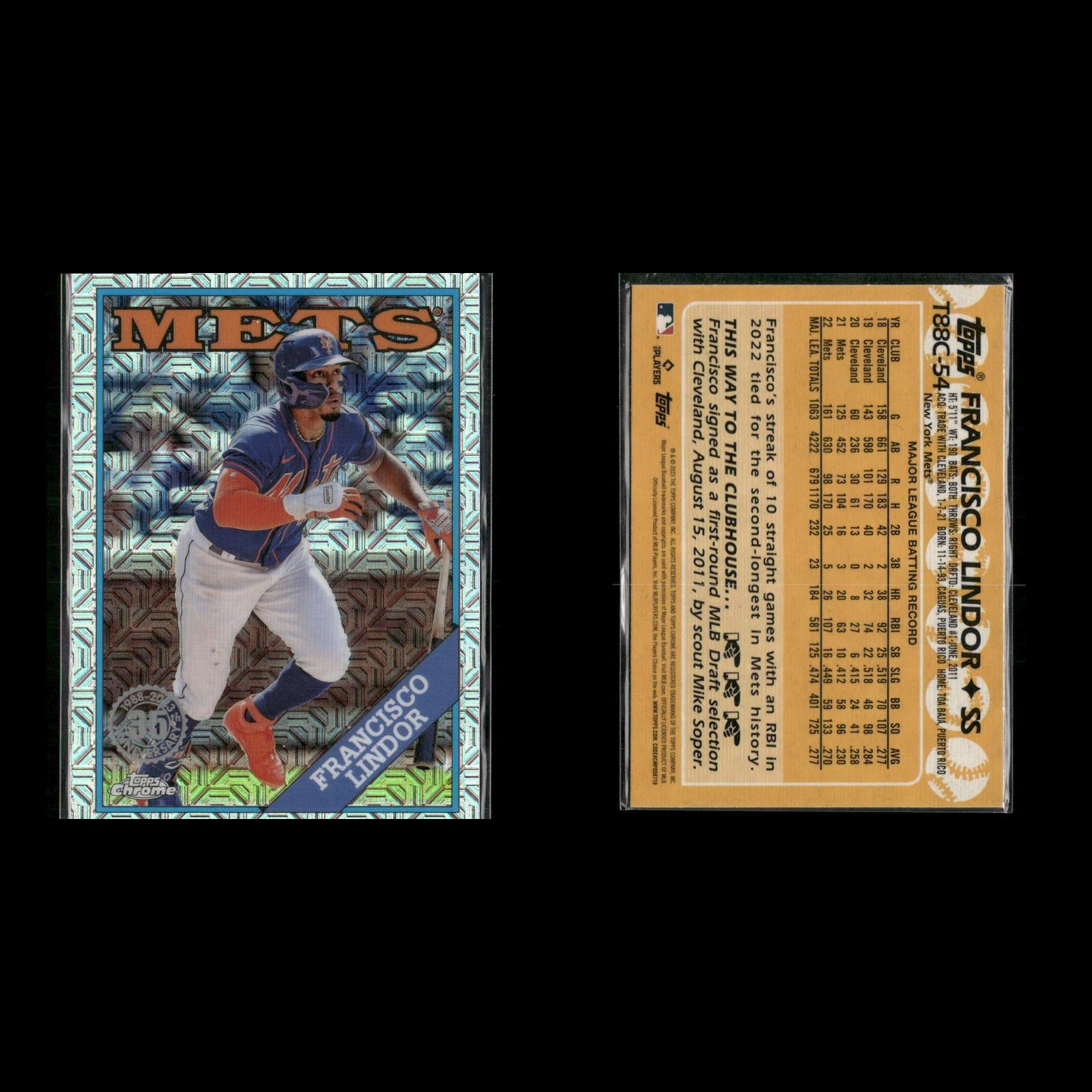2023 Topps #T88C-54 Francisco Lindor 1988 Topps Baseball 35th Anniversary Chrome (Series One) Francisco Lindor #350 2025 Topps 582 Montgomery Club New York Mets Francisco Lindor #US1 2021 Topps Update New York Mets Francisco Lindor #TC52-10 2021 Topps 1952 Topps Redux Chrome Cleveland Indians Francisco Lindor #89 2019 Bowman Cleveland Indians Francisco Lindor #117 2024 Topps Heritage New York Mets Francisco Lindor #SMLB-11 2025 Topps Stars of MLB New York Mets Queens High (Francisco Lindor / Jonathan Villar) VC #US39 2021 Topps Update New York Mets Francisco Lindor #650 2024 Topps Royal Blue New York Mets Francisco Lindor #193 2024 Stadium Club Chrome New York Mets