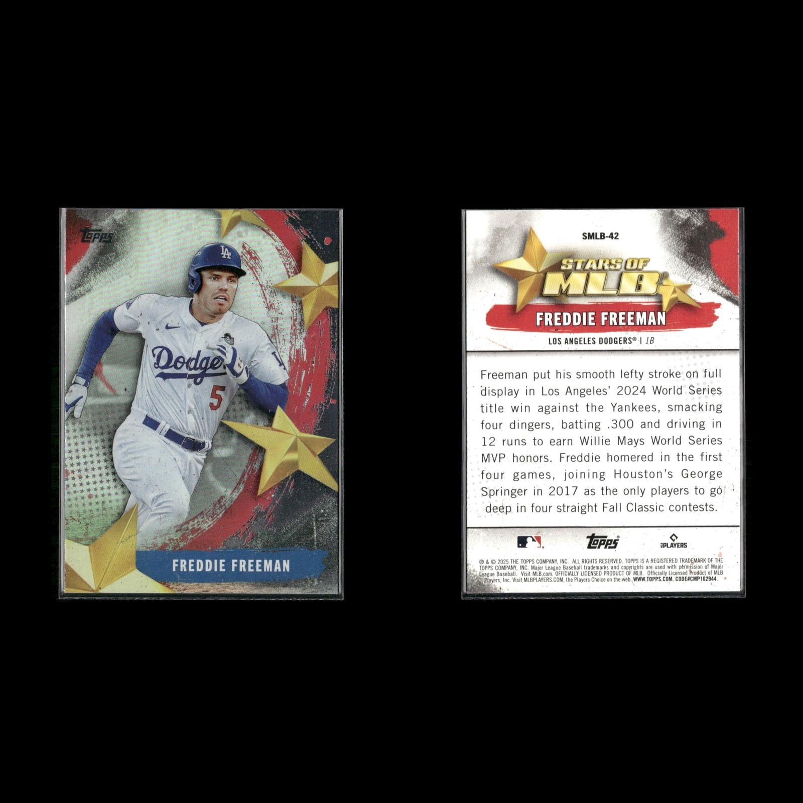 Freddie Freeman #SMLB-42 2025 Topps Stars of MLB Los Angeles Dodgers Freddie Freeman #NAP-7 2024 Topps Heritage New Age Performers Los Angeles Dodgers Freddie Freeman #219 2022 Topps Opening Day Atlanta Braves Atlanta Wins the World Series #210 2022 Topps Heritage Atlanta Braves Freddie Freeman #23 2025 Topps Chrome Los Angeles Dodgers Freddie Freeman #CFPRO-6 2024 Stadium Club Chief Fantasy Professionals Los Angeles Dodgers