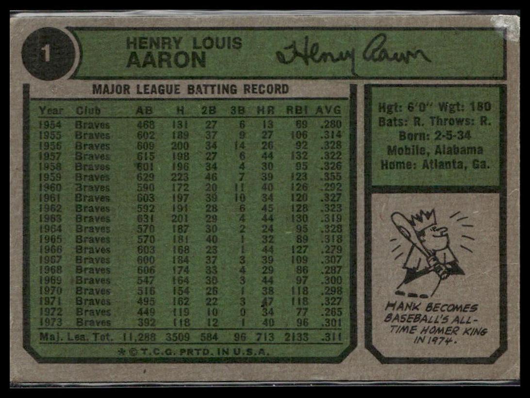 Hank Aaron: New All-Time Home Run King #1 1974 Topps Atlanta Braves