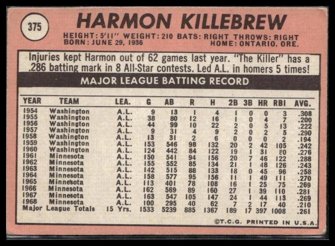 Harmon Killebrew #375 1969 Topps Minnesota Twins