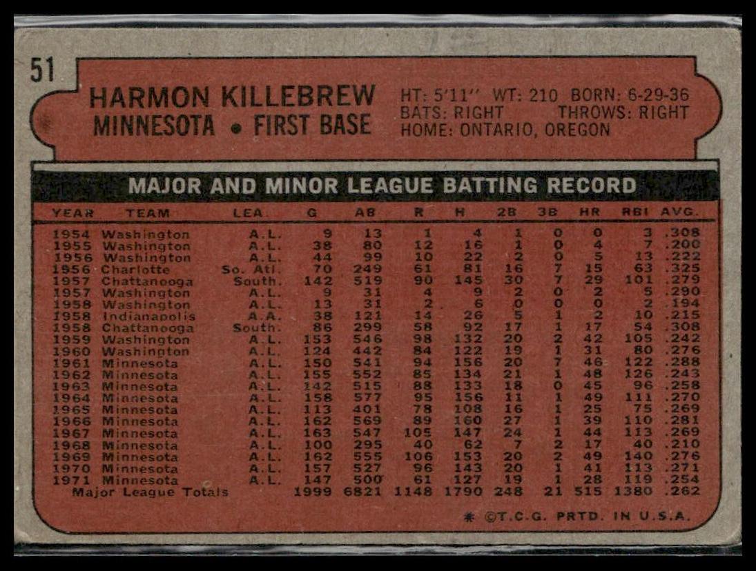Harmon Killebrew #51 1972 Topps Minnesota Twins