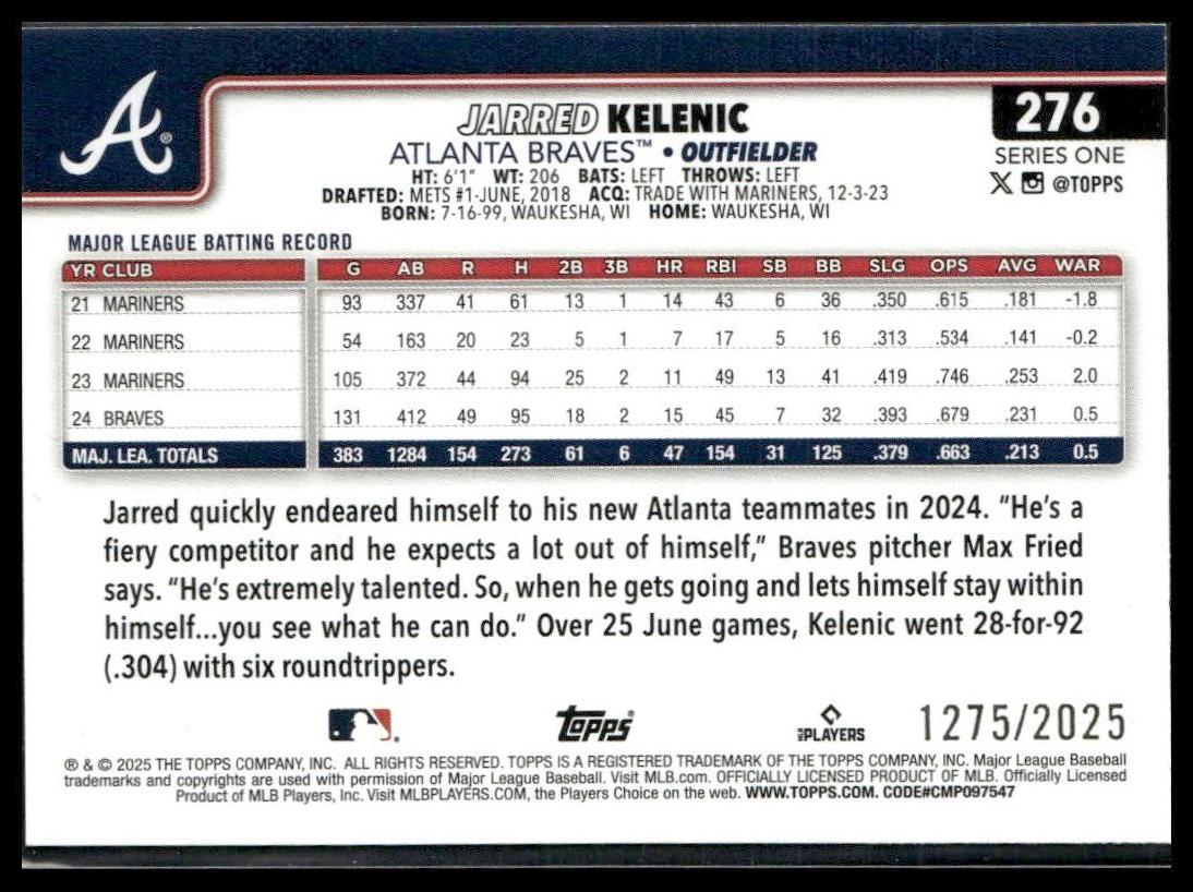 Jarred Kelenic #276 2025 Topps Gold #/2025 Atlanta Braves