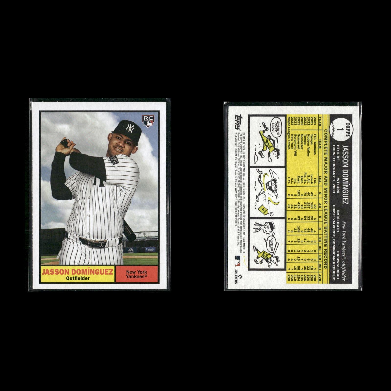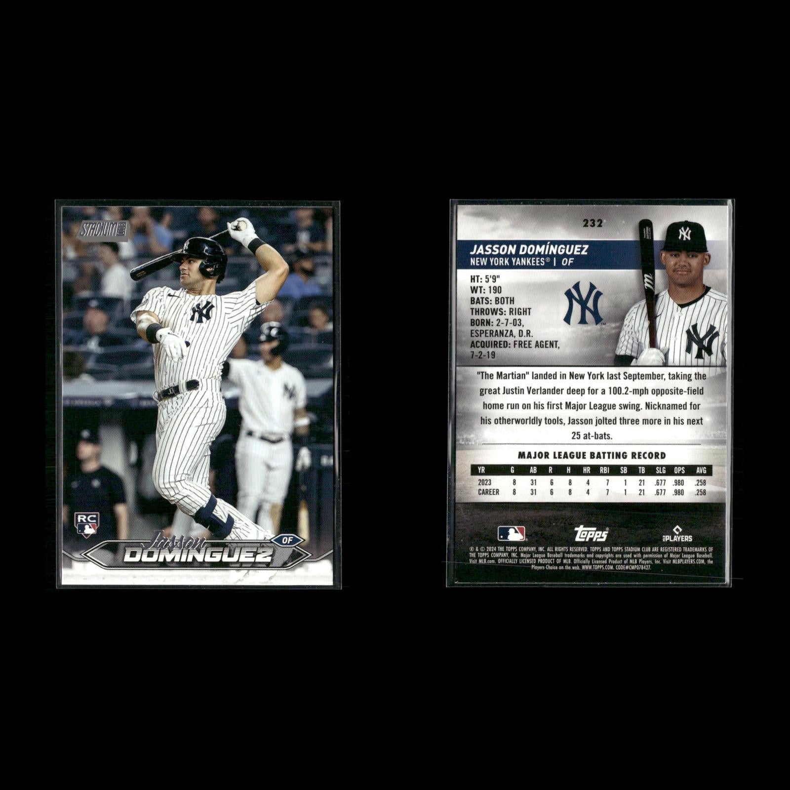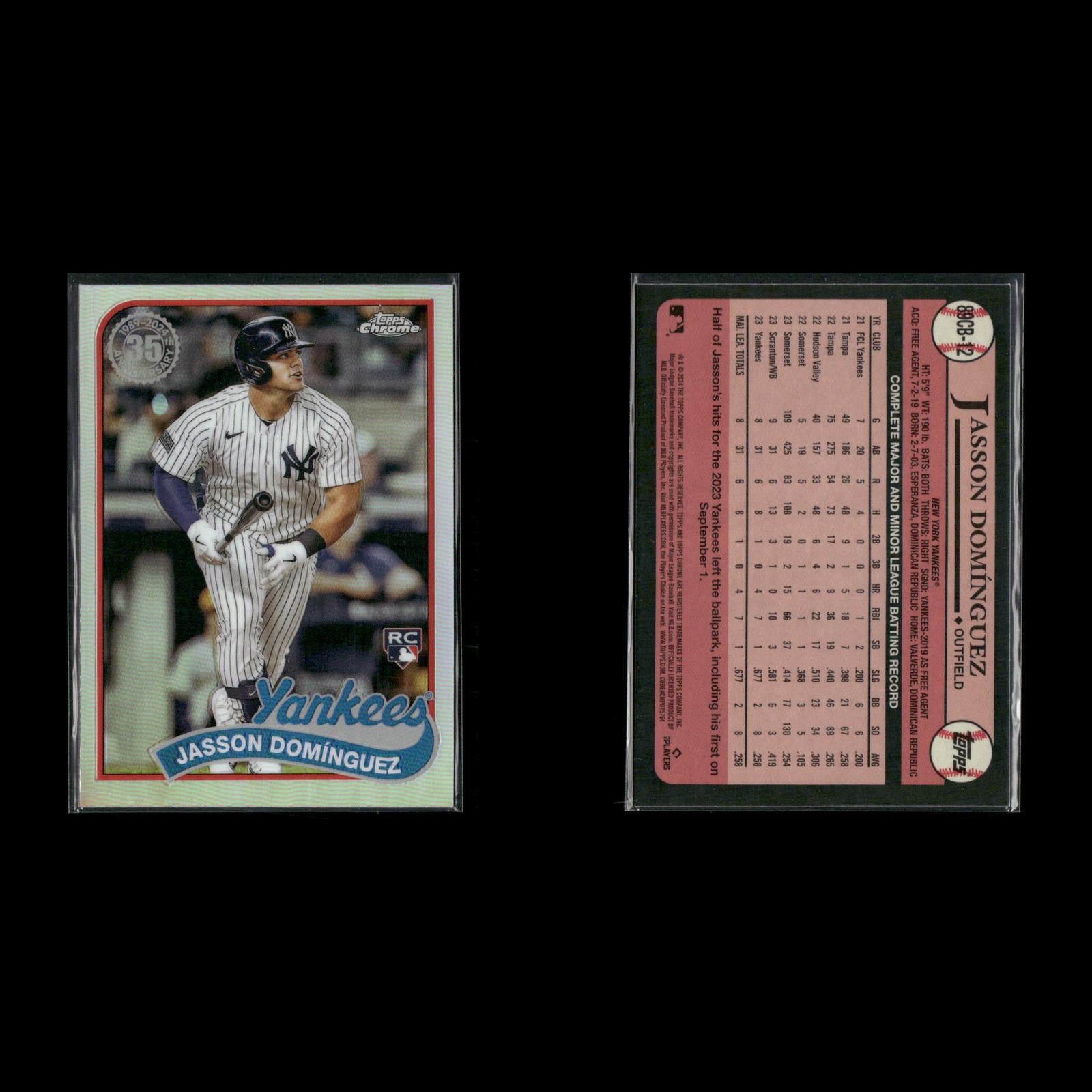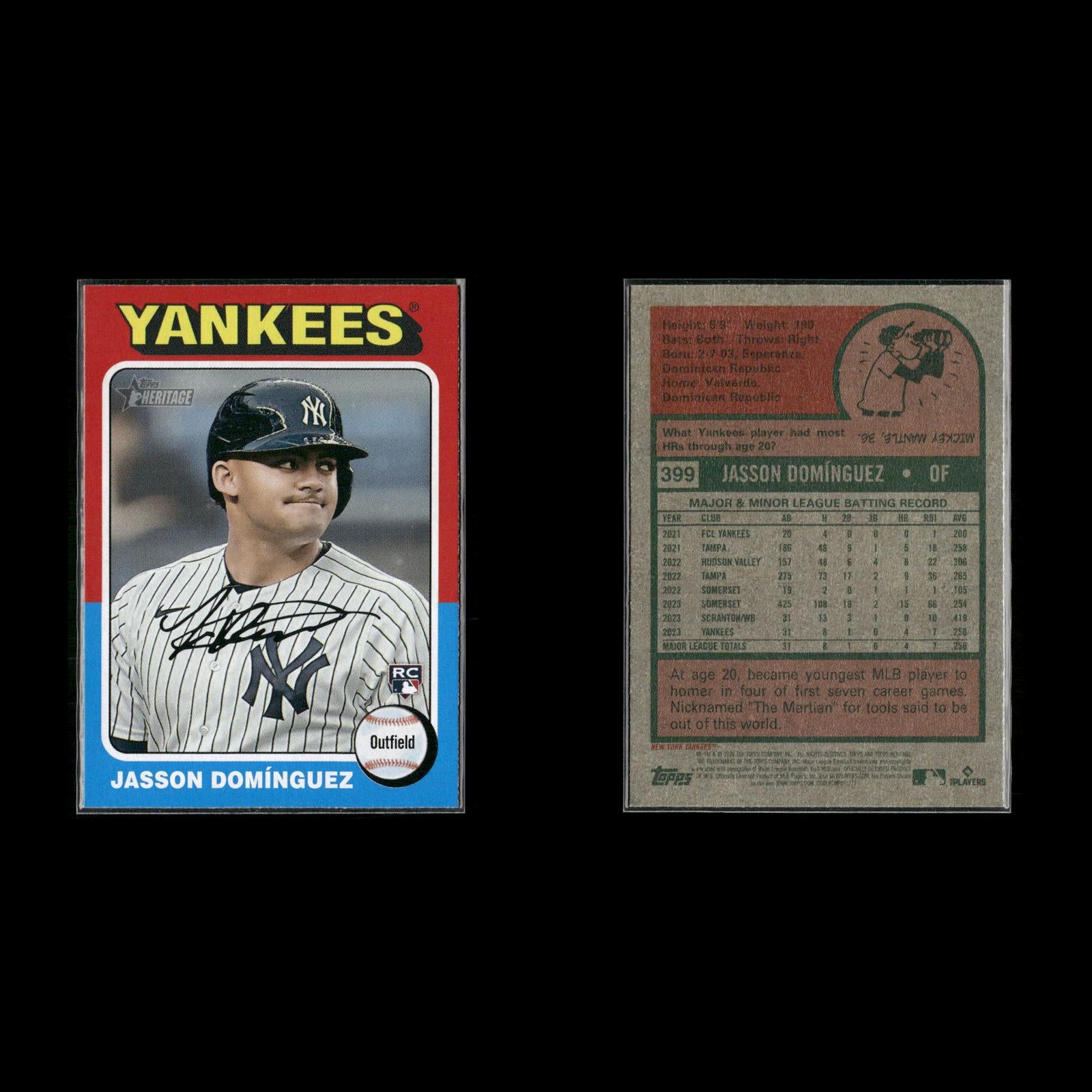 Jasson Domínguez #232 2024 Stadium Club Red Foil New York Yankees Jasson Domínguez #590 2025 Topps New York Yankees Jasson Domínguez #453 2025 Topps Heritage Dark Green New York Yankees Jasson Domínguez #OB-42 2024 Topps Heritage Oversized 1975 Topps Box Loaders New York Yankees Jasson Domínguez Rookie #89 2024 Topps Chrome Prism Refractors New York Yankees Jasson Domínguez Rookie #232 2024 Stadium Club New York Yankees Jasson Domínguez #89CB-12 2024 Topps Chrome 1989 Topps Baseball 35th Anniversary New York Yankees