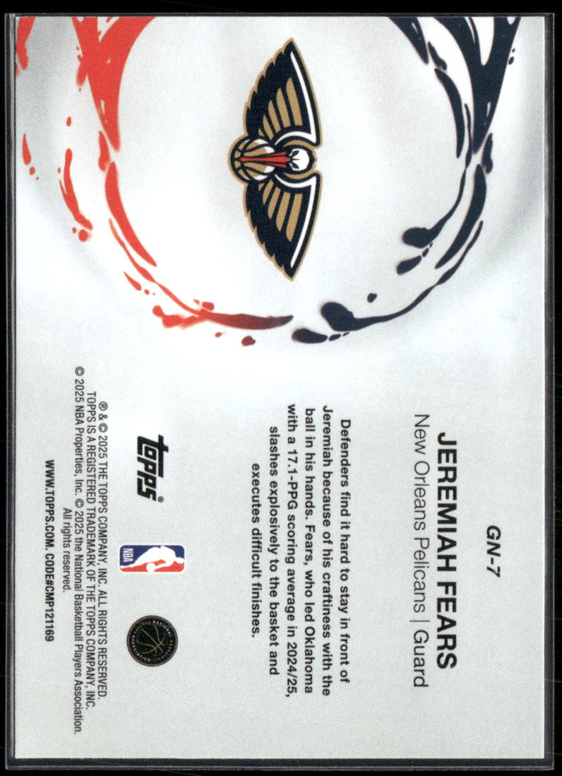 Jeremiah Fears #GN-7 2025-26 Topps Generation Now New Orleans Pelicans