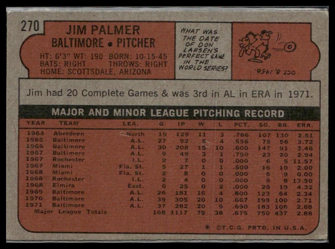 Jim Palmer #270 1972 Topps Baltimore Orioles