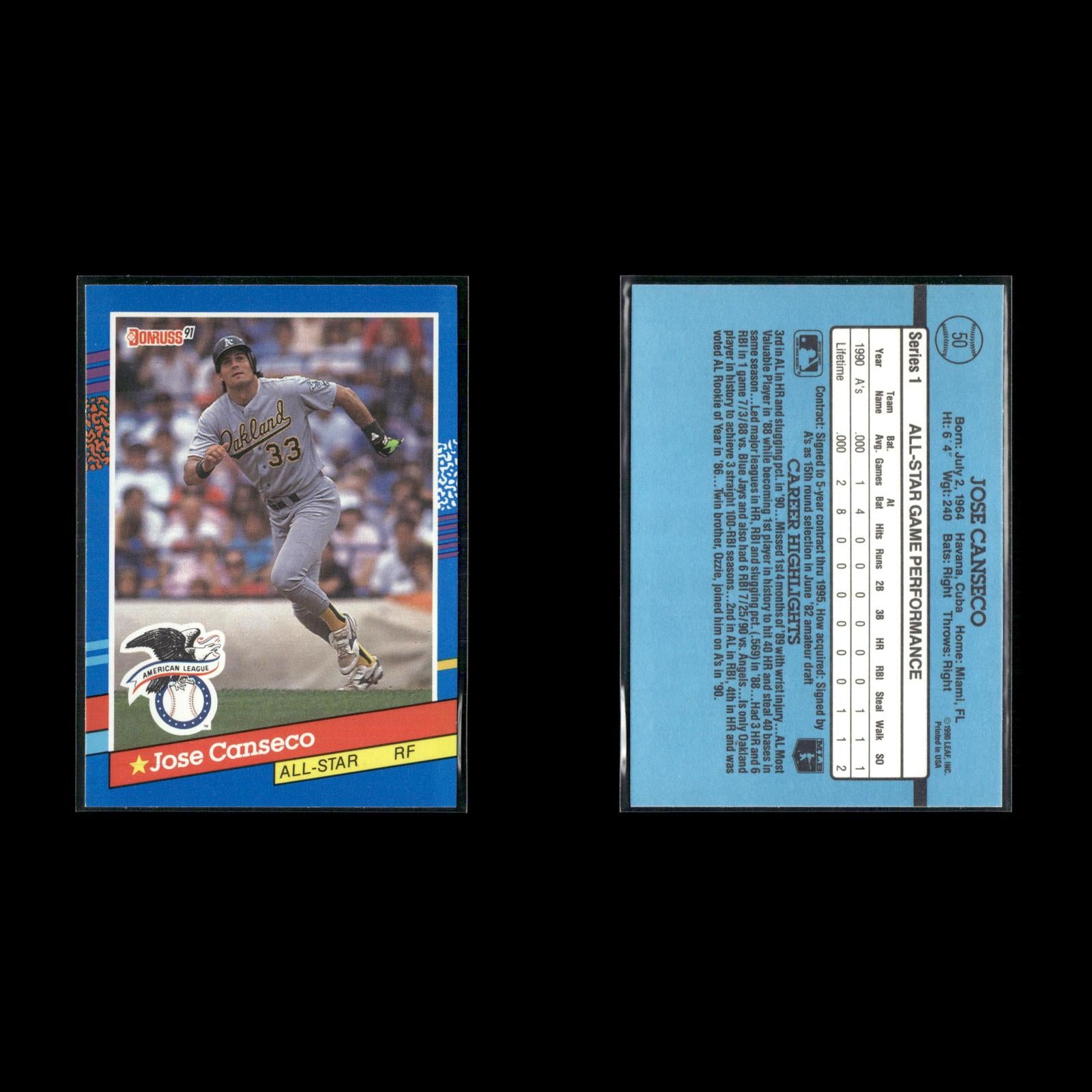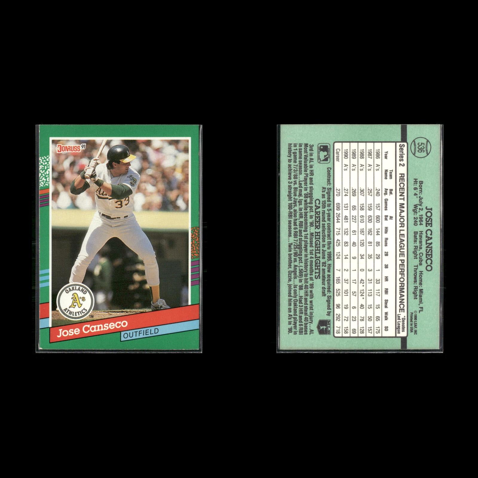 Jose Canseco 15-Card Lot Oakland A’s Bash Brother MVP Power Bat