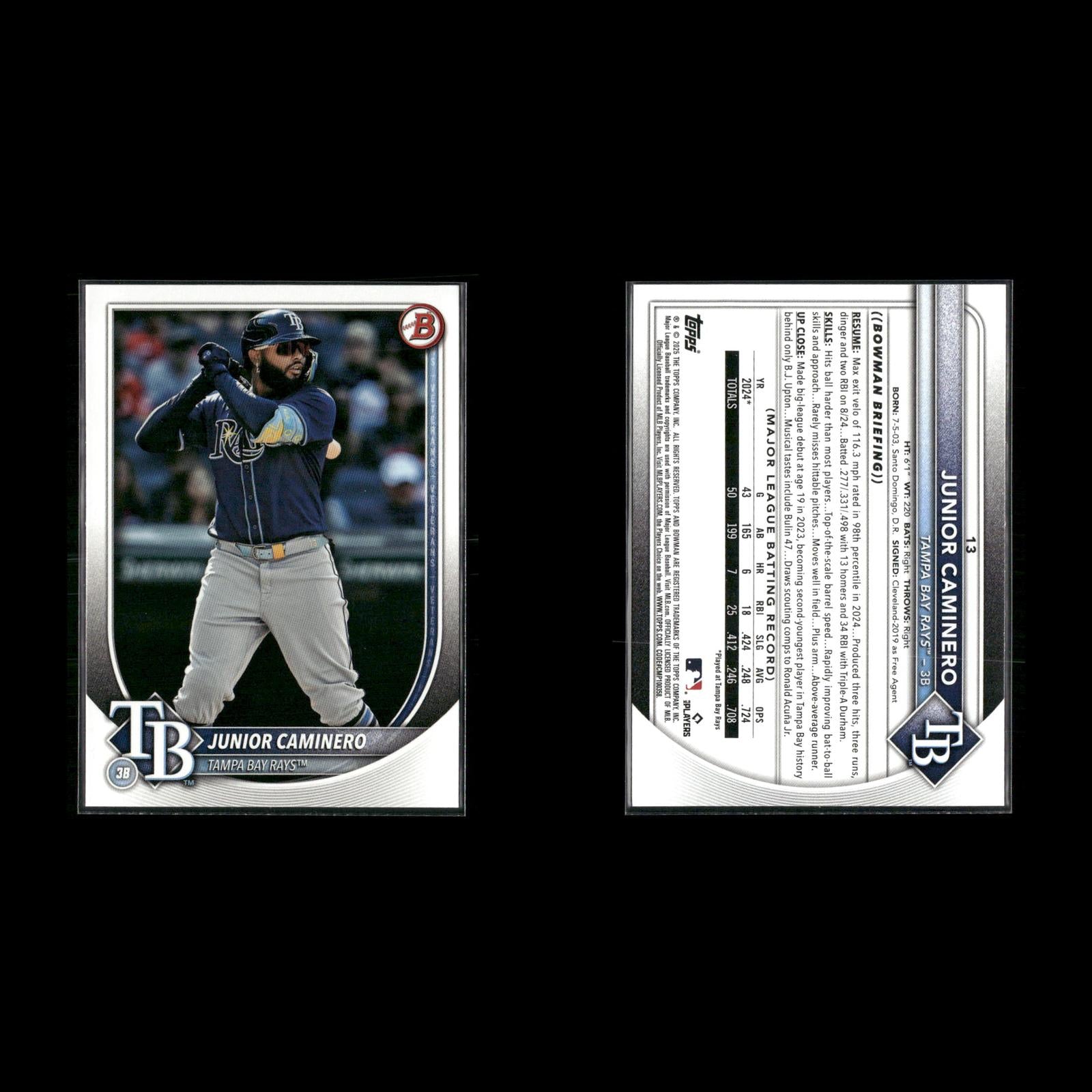 Junior Caminero Rookie #267 2024 Topps Heritage Tampa Bay Rays 2025 Bowman #13 Junior Caminero Junior Caminero #477 2025 Topps Tampa Bay Rays 2025 Topps Heritage #280 Junior Caminero 2025 Topps #SMLB-60 Junior Caminero Stars of MLB Junior Caminero Rookie #20 2024 Bowman Tampa Bay Rays Junior Caminero Rookie #628 2024 Topps Tampa Bay Rays Junior Caminero Rookie #267 2024 Topps Heritage Tampa Bay Rays Junior Caminero #280 2025 Topps Heritage Tampa Bay Rays Junior Caminero #SF-22 2024 Stadium Club Special Forces Tampa Bay Rays Junior Caminero #89CB-15 2024 Topps Chrome 1989 Topps Baseball 35th Anniversary Tampa Bay Rays Junior Caminero Rookie #213 2024 Topps Chrome Tampa Bay Rays