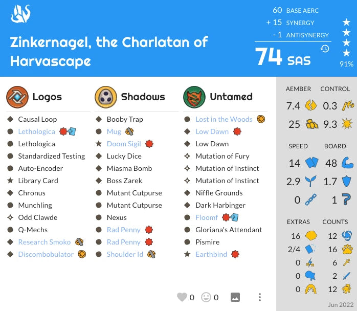 - SAS Rating: 74 (via Decks of KeyForge)