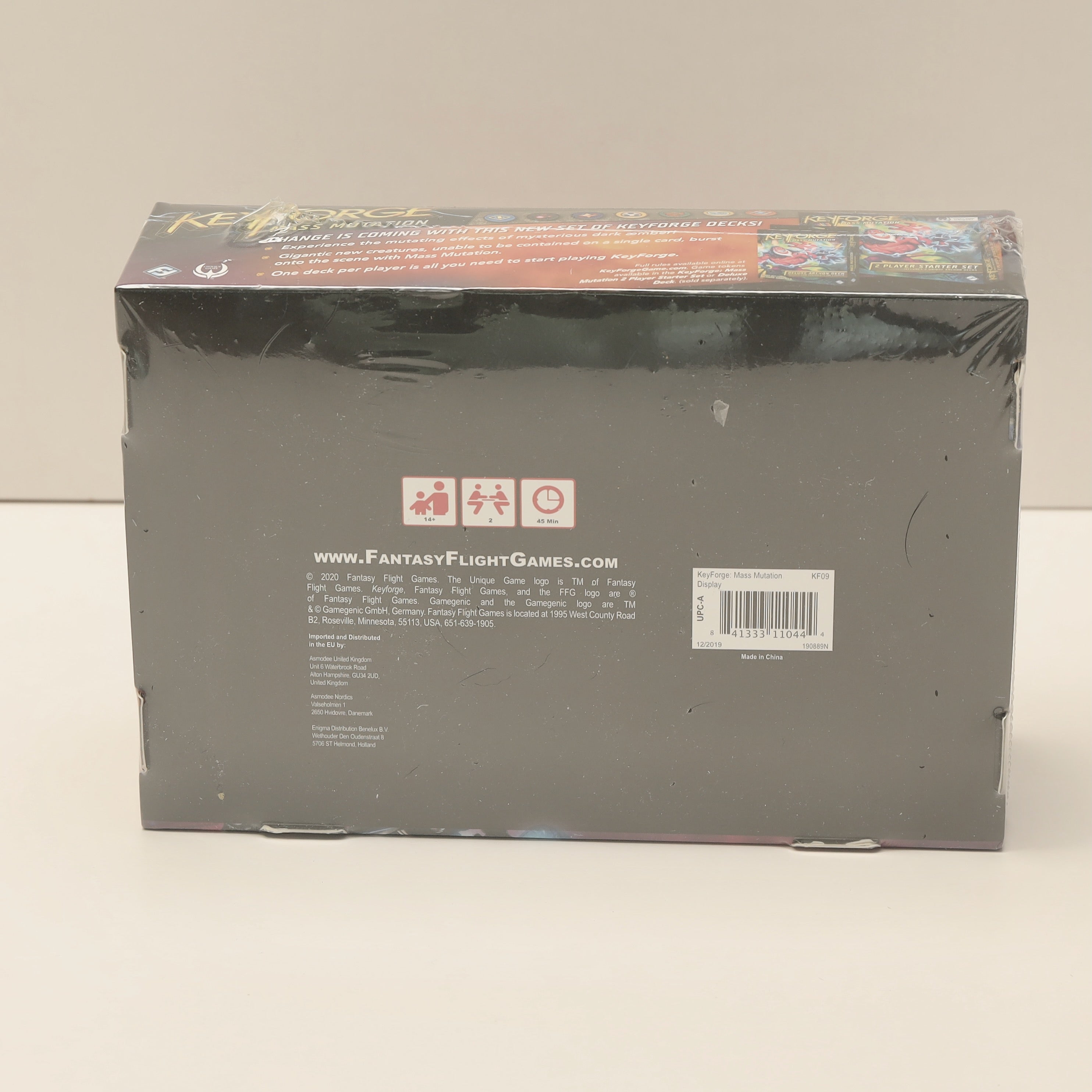 KeyForge: Mass Mutation is the fourth set in the groundbreaking Unique Deck Game series. This factory-sealed booster box contains a collection of never-before-seen decks, each uniquely generated. Featuring over 250 new cards, enhanced creatures, and the introduction of mutant powers, Mass Mutation expands the strategic possibilities of the KeyForge universe.