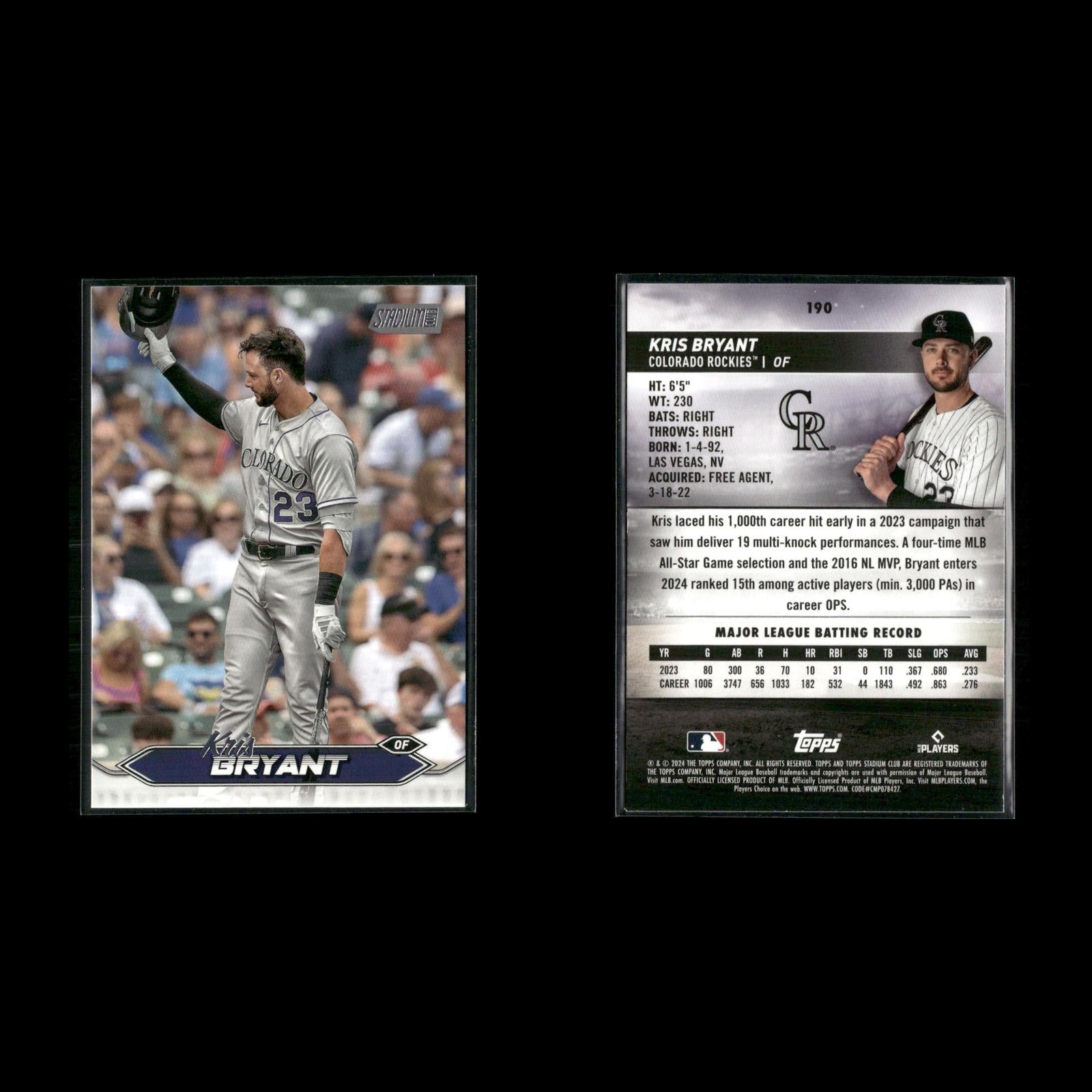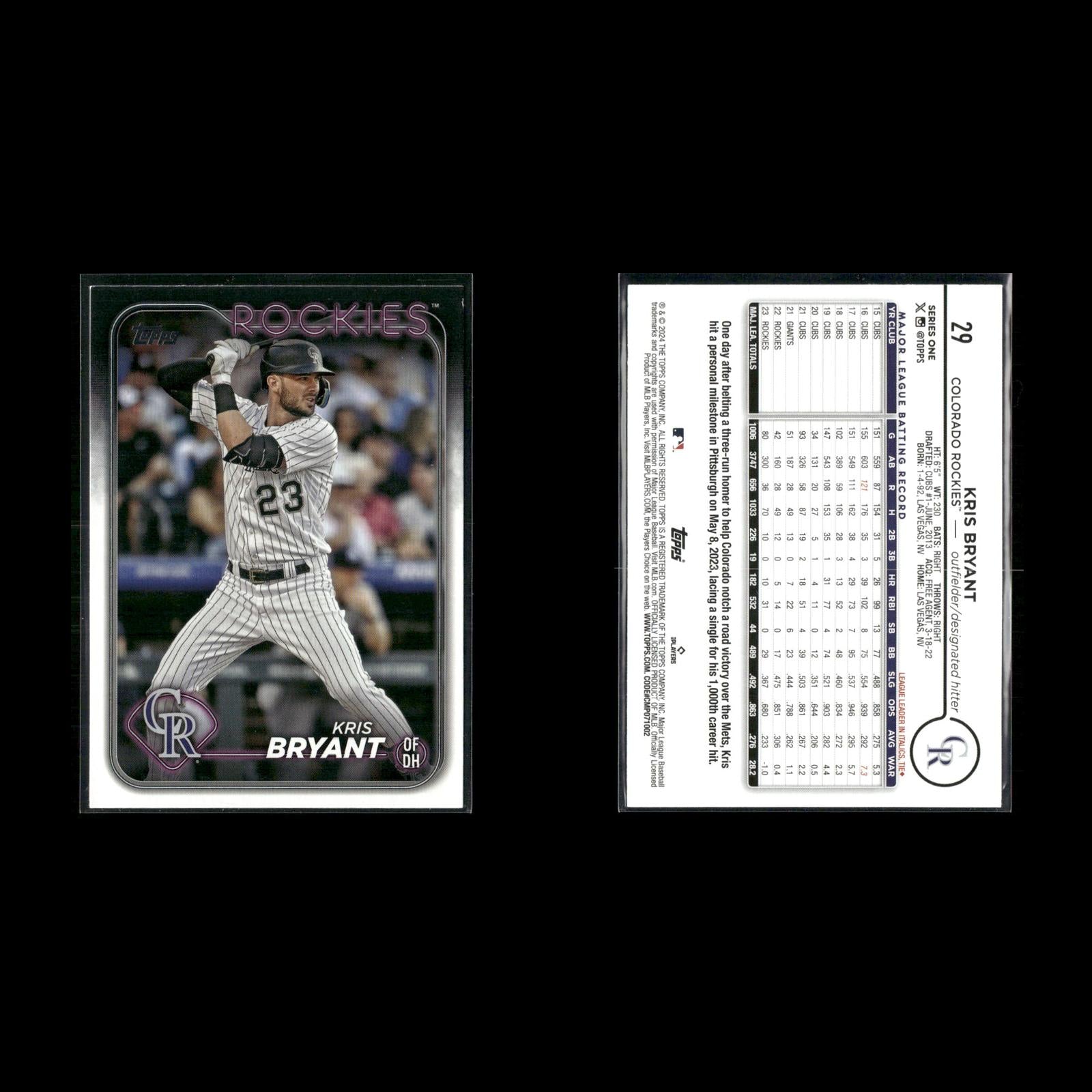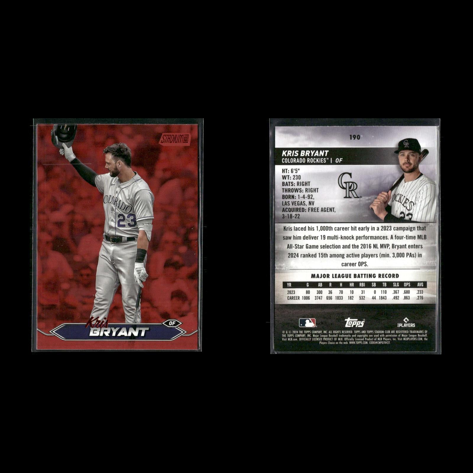 Kris Bryant #248 2025 Topps Chrome Colorado Rockies Kris Bryant #190 2024 Stadium Club Red Foil Colorado Rockies Kris Bryant #190 2024 Stadium Club Pink Foil Colorado Rockies Kris Bryant #T92-12 2021 Topps Update 1992 Topps Redux Chicago Cubs Kris Bryant #ASG-9 2021 Topps Update 2021 MLB All-Stars Chicago Cubs 2016 MVPs (Mike Trout / Kris Bryant) MVP #209 2024 Topps Heritage Kris Bryant #NL-5 2024 Topps Stars of the National League Colorado Rockies Kris Bryant #405 2025 Topps Colorado Rockies