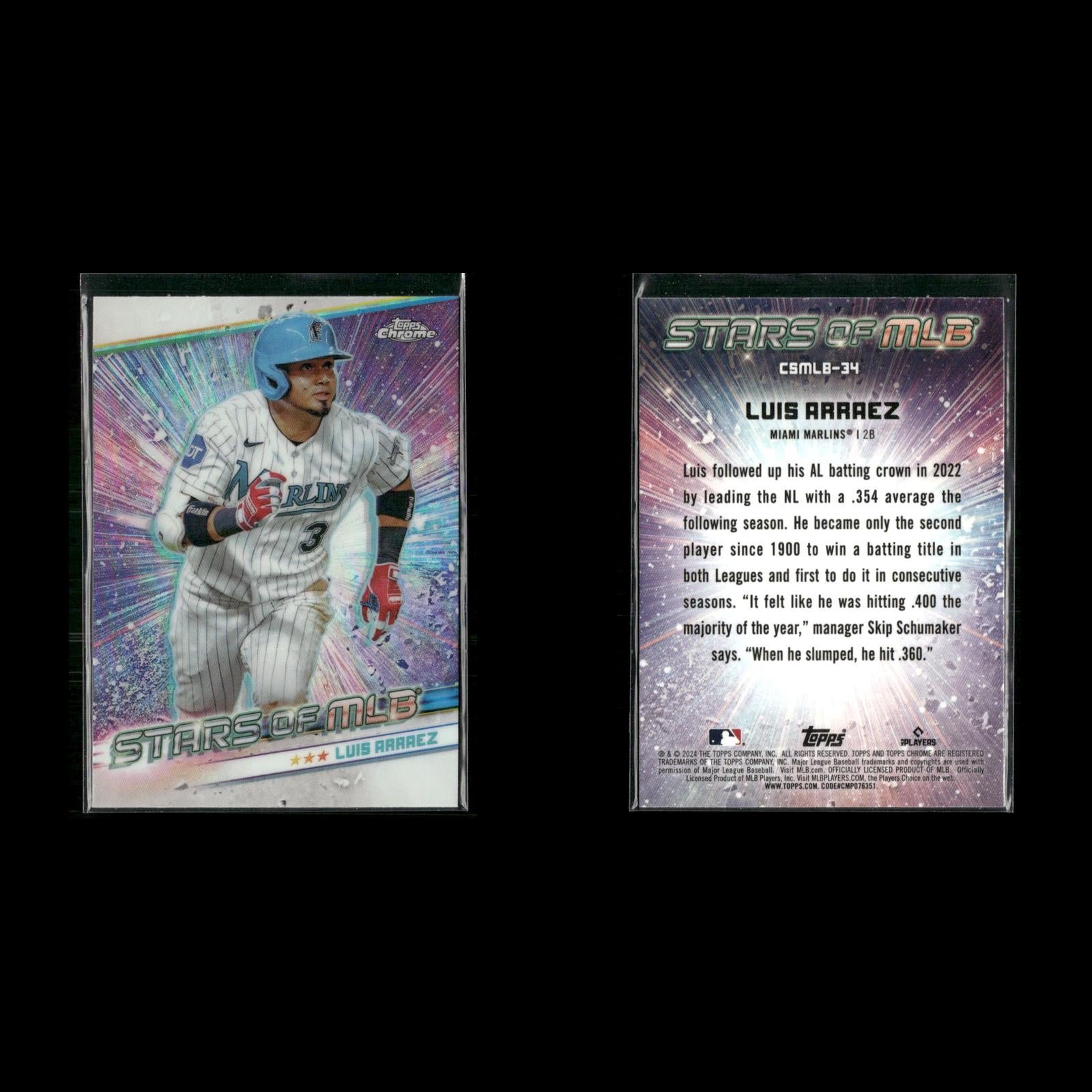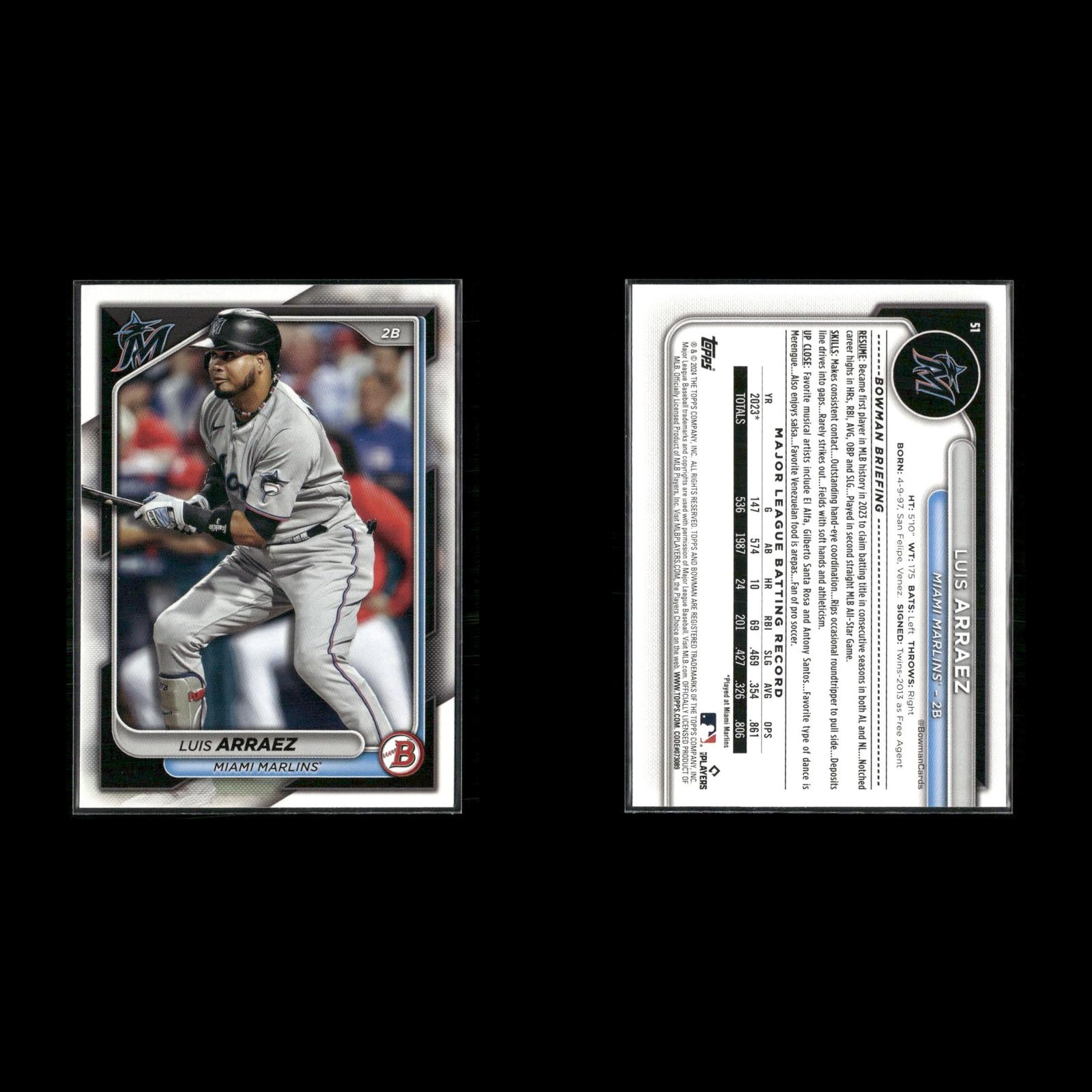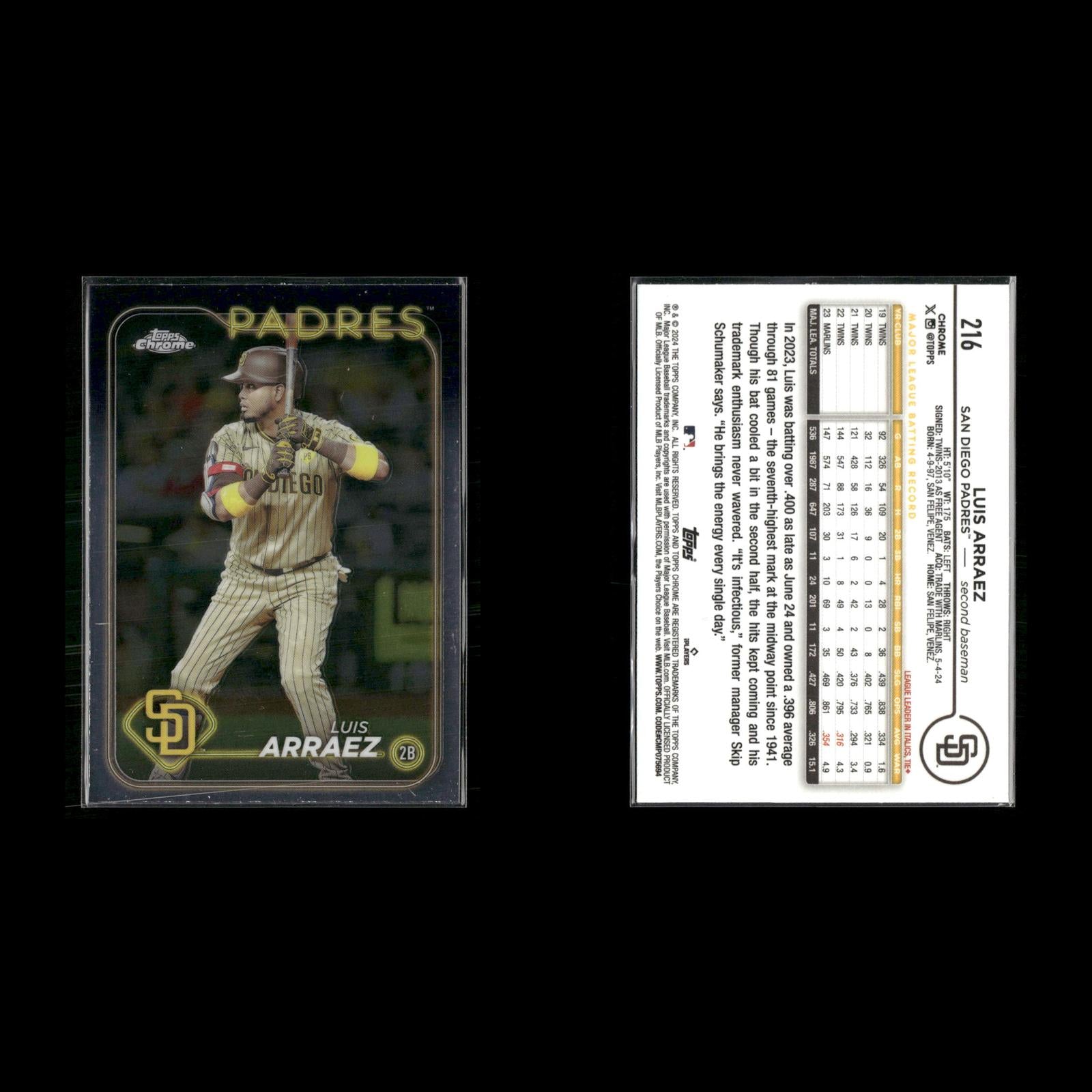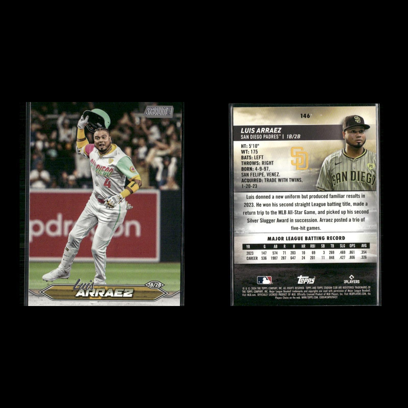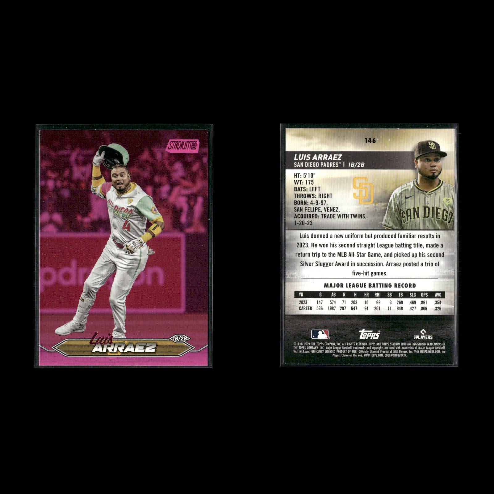 Luis Arraez #CTF-18 2024 Topps Covering the Field Miami Marlins Luis Arraez #146 2024 Stadium Club Pink Foil San Diego Padres Luis Arraez / Rod Carew #TAN-7 2024 Topps Heritage Then and Now Batting Leaders - 2023 (Yandy Díaz / Luis Arraez) LL #306 2024 Topps Heritage National League Leaders AVG (Luis Arraez / Shohei Ohtani / Marcell Ozuna) LL, SN76 #347 2025 Topps Independence Day Luis Arraez #51 2024 Bowman Miami Marlins Luis Arraez #CSMLB-34 2024 Topps Stars of MLB Chrome Miami Marlins Luis Arraez #341 2024 Topps Heritage Flip Stock Miami Marlins Luis Arraez #CTF-18 2024 Topps Covering the Field Blue Miami Marlins Luis Arraez #216 2024 Topps Chrome San Diego Padres Luis Arraez #146 2024 Stadium Club San Diego Padres National League Leaders AVG (Luis Arraez / Shohei Ohtani / Marcell Ozuna) LL #347 2025 Topps