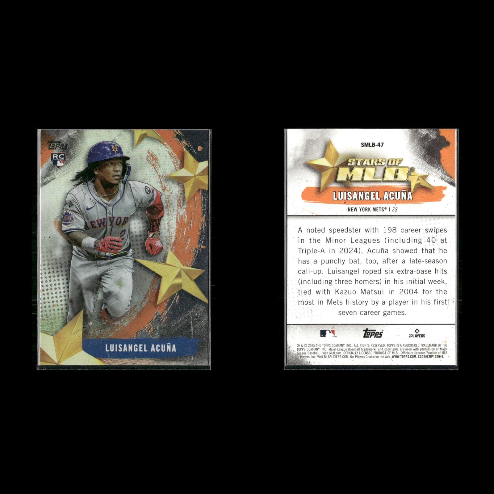 Luisangel Acuña Rookie #83 2025 Bowman New York Mets Luisangel Acuña Rookie #524 2025 Topps New York Mets Luisangel Acuña #SMLB-47 2025 Topps Stars of MLB New York Mets Luisangel Acuña Rookie #274 2025 Topps Heritage Dark Blue New York Mets Luisangel Acuna #18 2025 Topps Flagship Collection New York Mets