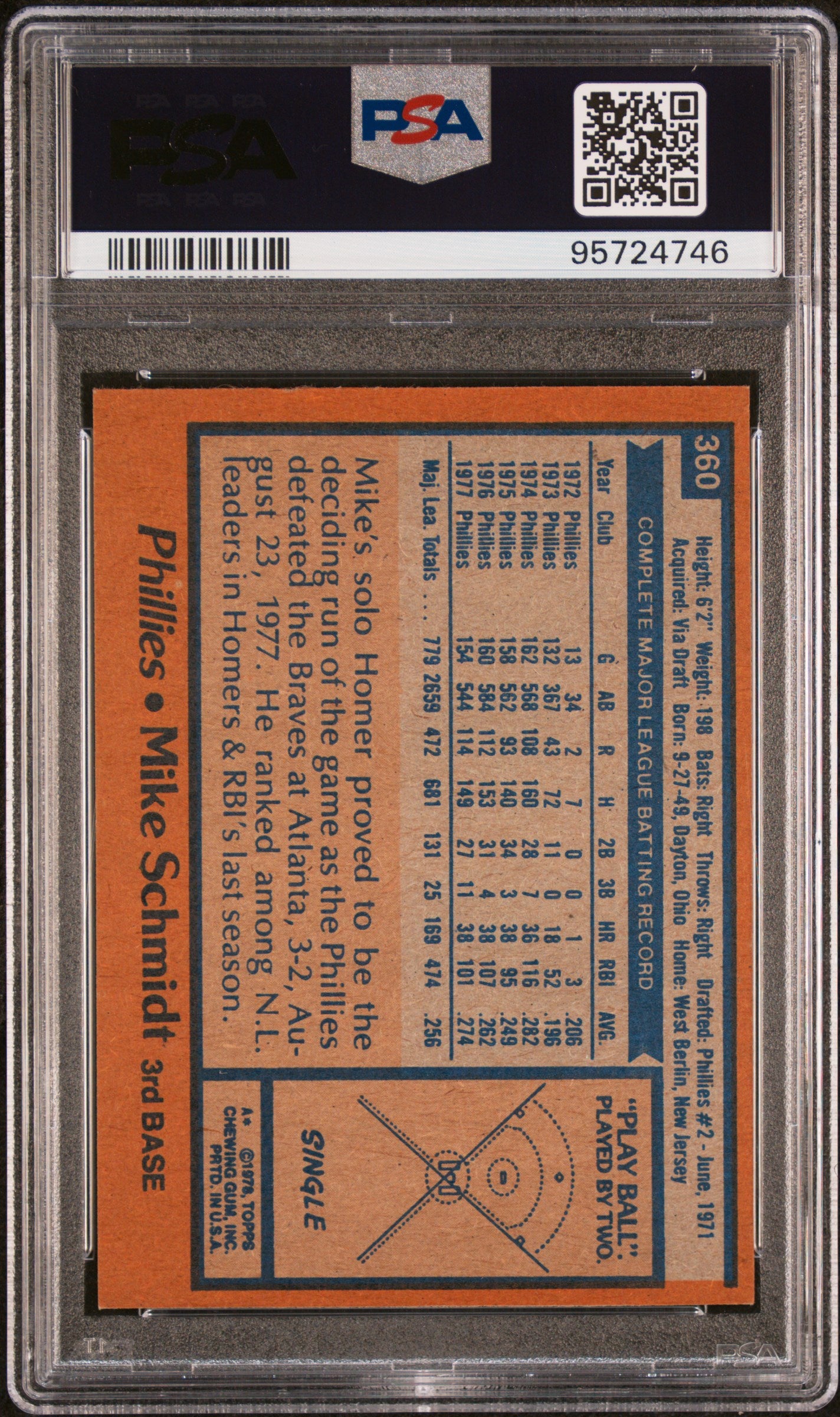 Mike Schmidt #360 1978 Topps Philadelphia Phillies PSA 7