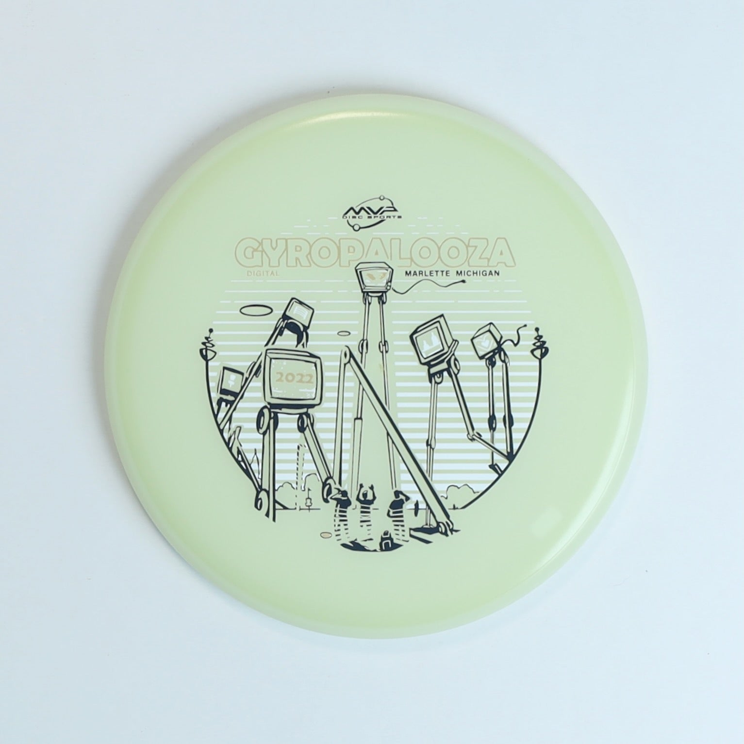 About the Game: The Proxy is a popular MVP putter known for its straight flight and minimal fade, making it reliable for both putting and approach shots. This Gyropalooza 2022 edition features a limited-release stamp celebrating the annual event in Marlette, Michigan. Made from glow plastic, it’s perfect for night rounds and collectors alike.