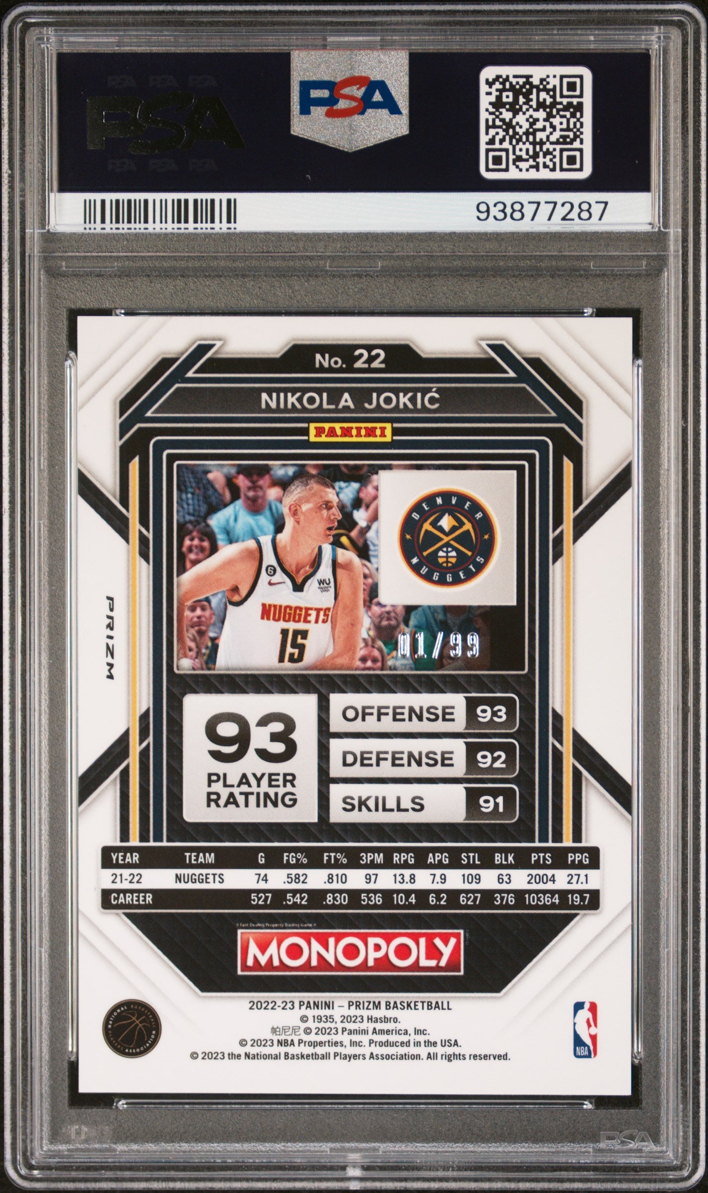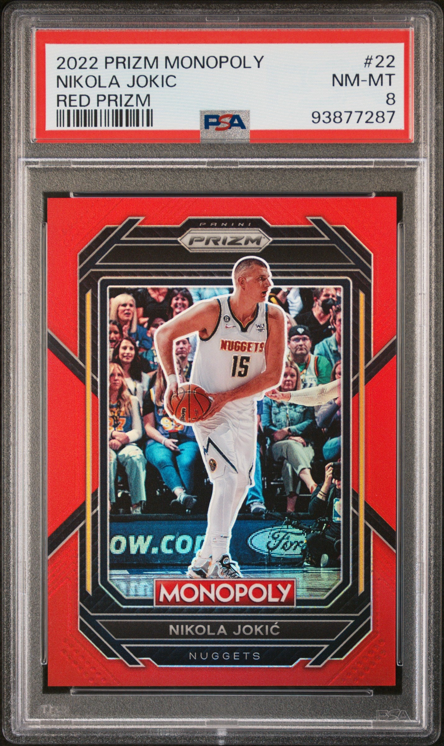 Nikola Jokic #22 2022 Panini Prizm Monopoly Red Prizm Denver Nuggets PSA 8