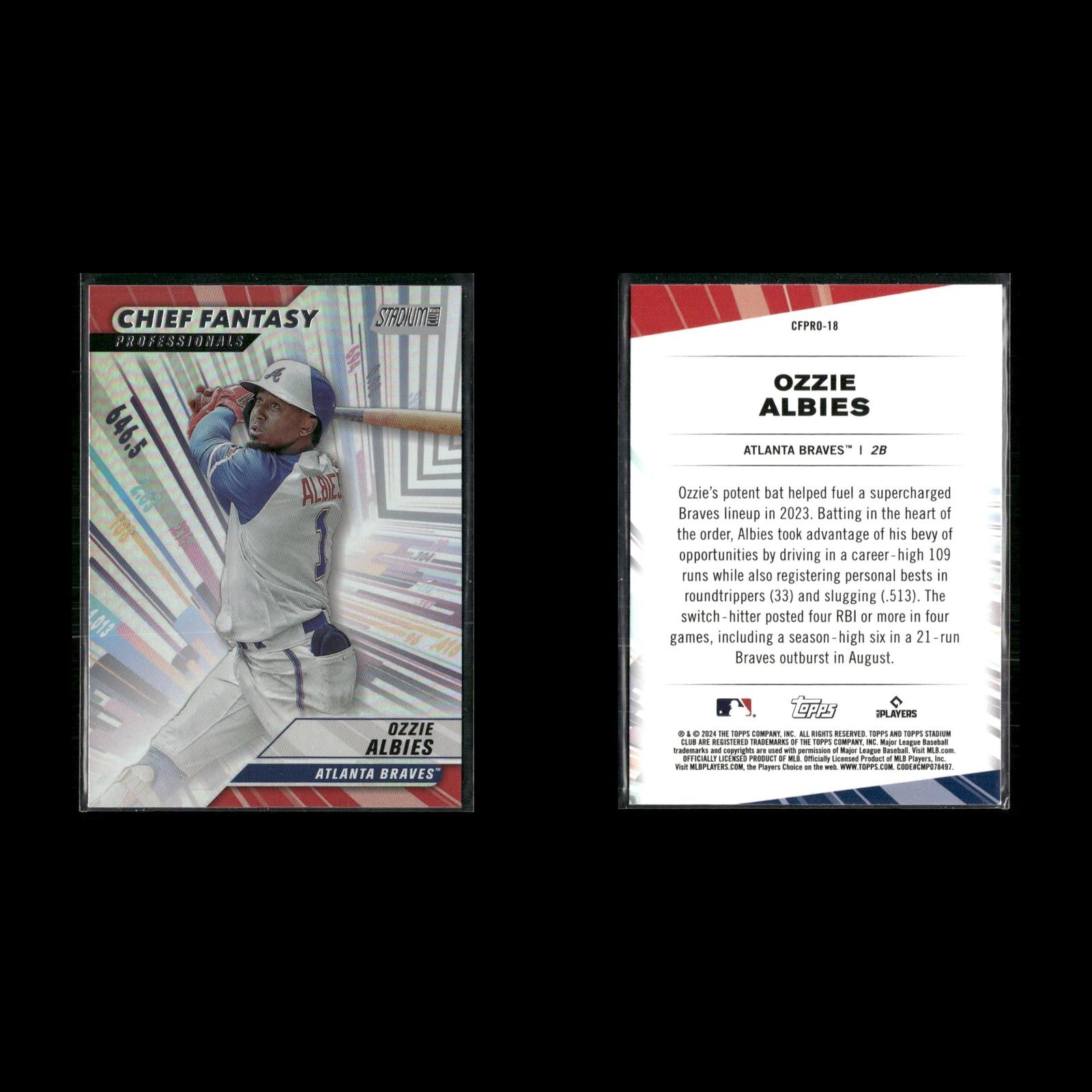 Ozzie Albies #365 2025 Topps Heritage Atlanta Braves Ozzie Albies #364 2025 Topps Atlanta Braves Ozzie Albies #CFPRO-18 2024 Stadium Club Chief Fantasy Professionals Atlanta Braves Ozzie Albies #17 2018 Topps National Baseball Card Day Atlanta Braves Ozzie Albies #206 2025 Topps Chrome Mojo Refractor Atlanta Braves