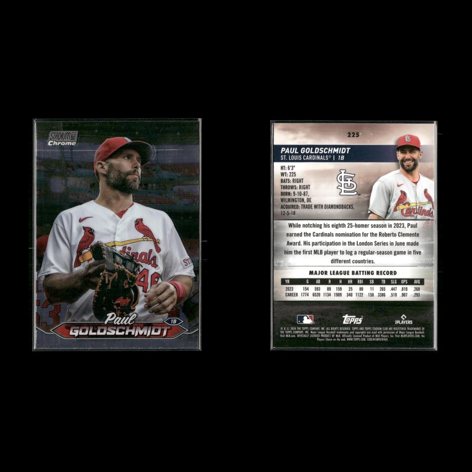Paul Goldschmidt #SMLB-57 2025 Topps Stars of MLB New York Yankees Paul Goldschmidt #225 2024 Stadium Club Chrome St. Louis Cardinals Paul Goldschmidt #80 2021 Topps UK Edition St. Louis Cardinals Paul Goldschmidt #ATH-3 2024 Topps Around the Horn St. Louis Cardinals Paul Goldschmidt #490 2024 Topps Heritage St. Louis Cardinals Paul Goldschmidt #225 2024 Stadium Club Chrome Refractors St. Louis Cardinals
