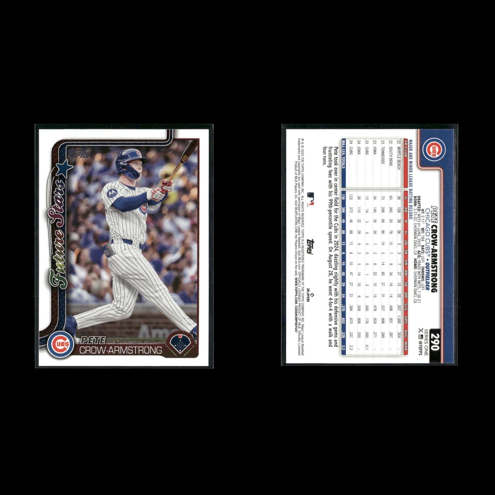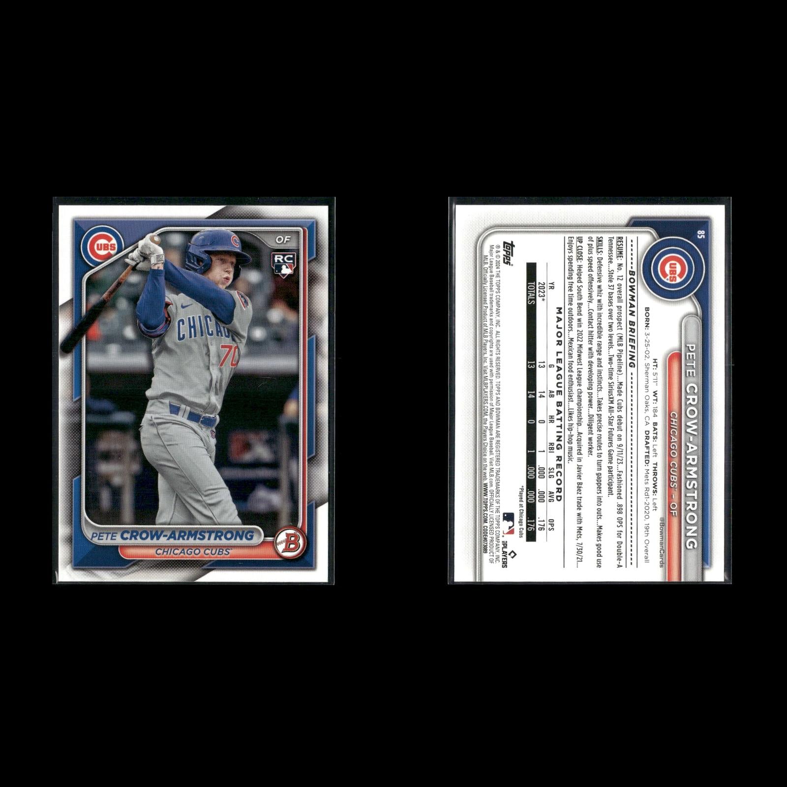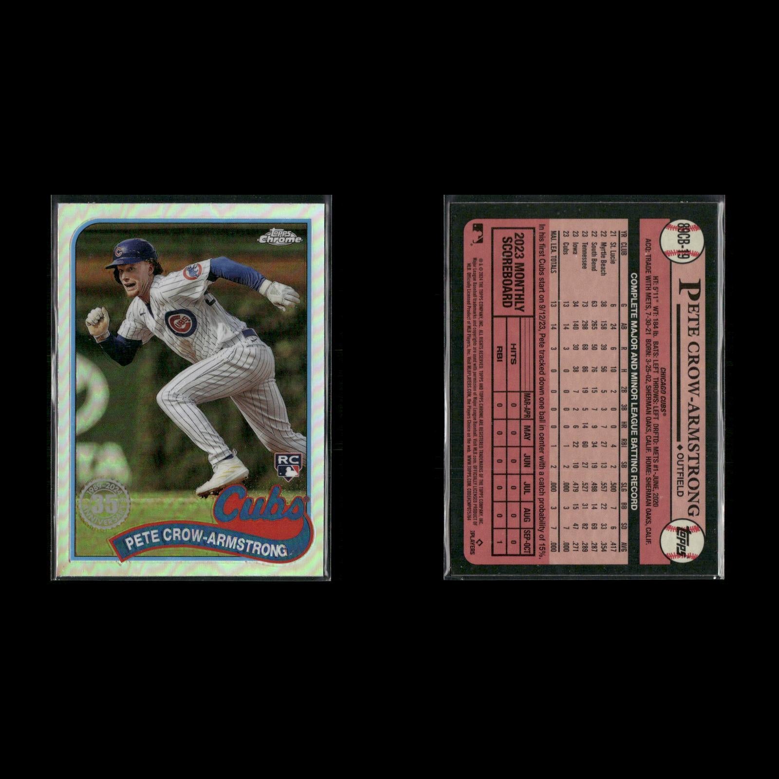 Pete Crow-Armstrong #99NB-9 2024 Topps Archives 1999 Topps Baseball New Breed Chicago Cubs Cheerful In Chicago (Pete Crow-Armstrong / Seiya Suzuki) CL, CPC #371 2024 Topps Chicago Cubs Pete Crow-Armstrong Rookie #177 2024 Topps Heritage Chicago Cubs Pete Crow-Armstrong Rookie #16 2024 Topps Chrome Refractors Chicago Cubs Pete Crow-Armstrong #290 2025 Topps Chicago Cubs Pete Crow-Armstrong #89CB-19 2024 Topps Chrome 1989 Topps Baseball 35th Anniversary Chicago Cubs Pete Crow-Armstrong #BG-15 2024 Topps Update Topps Black Gold Chicago Cubs Pete Crow-Armstrong Rookie #85 2024 Bowman Chicago Cubs