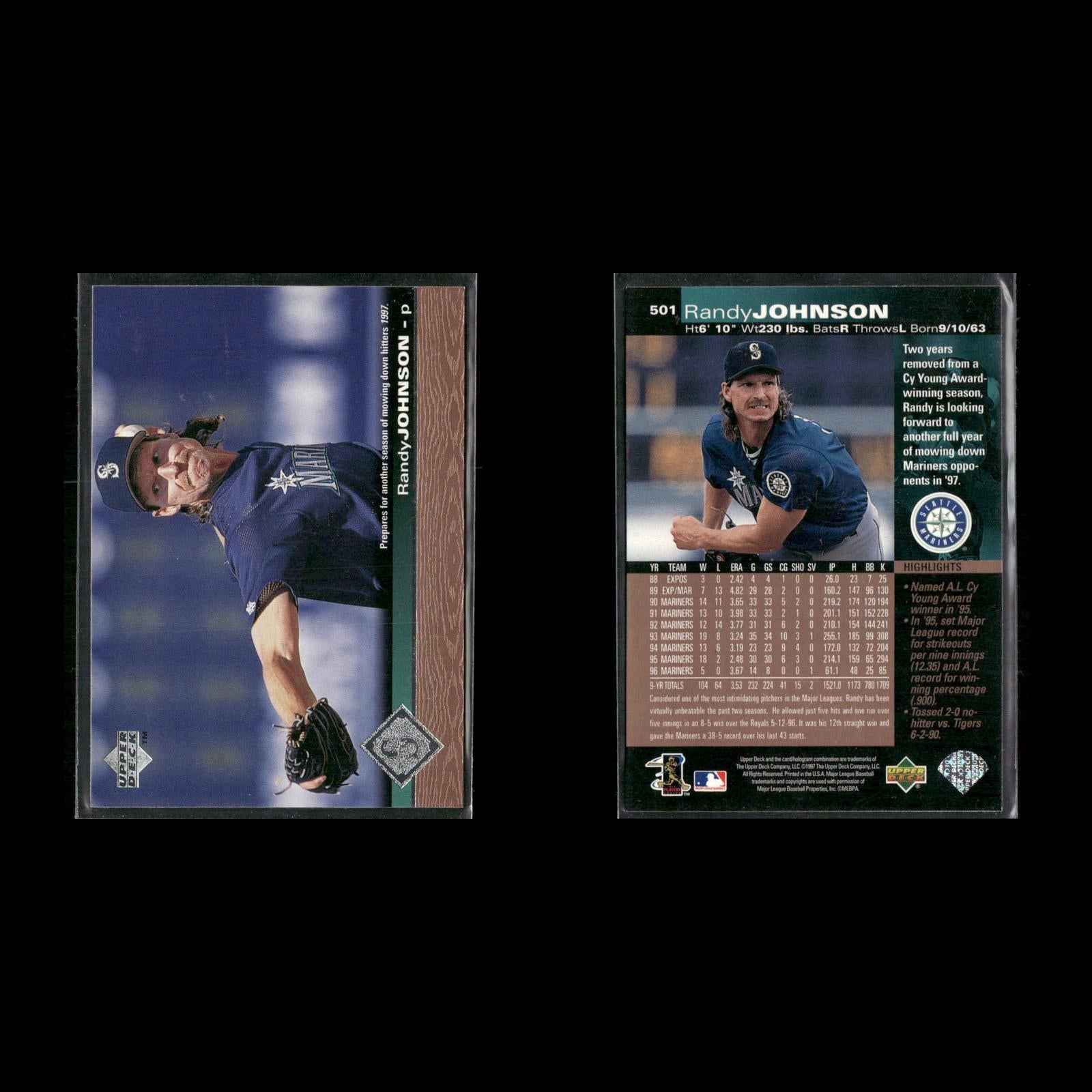 Randy Johnson #379b 1990 Donruss Seattle Mariners Randy Johnson Rookie #42d 1989 Donruss Montreal Expos Randy Johnson #110 1997 Topps Chrome Seattle Mariners Randy Johnson #501 1997 Upper Deck Seattle Mariners Randy Johnson #NNO 2000 Pacific Backyard Baseball Arizona Diamondbacks Randy Johnson #166G 1999 Ultra Gold Medallion Houston Astros Randy Johnson #83 2024 Topps Archives Arizona Diamondbacks Randy Johnson #160 2021 Topps Gallery Seattle Mariners Randy Johnson Rookie #647 1989 Topps Montreal Expos Randy Johnson #225 1991 Topps Seattle Mariners Randy Johnson #BC-2b 1991 Donruss Bonus Cards Seattle Mariners Randy Johnson #8 2024 Stadium Club Chrome Arizona Diamondbacks