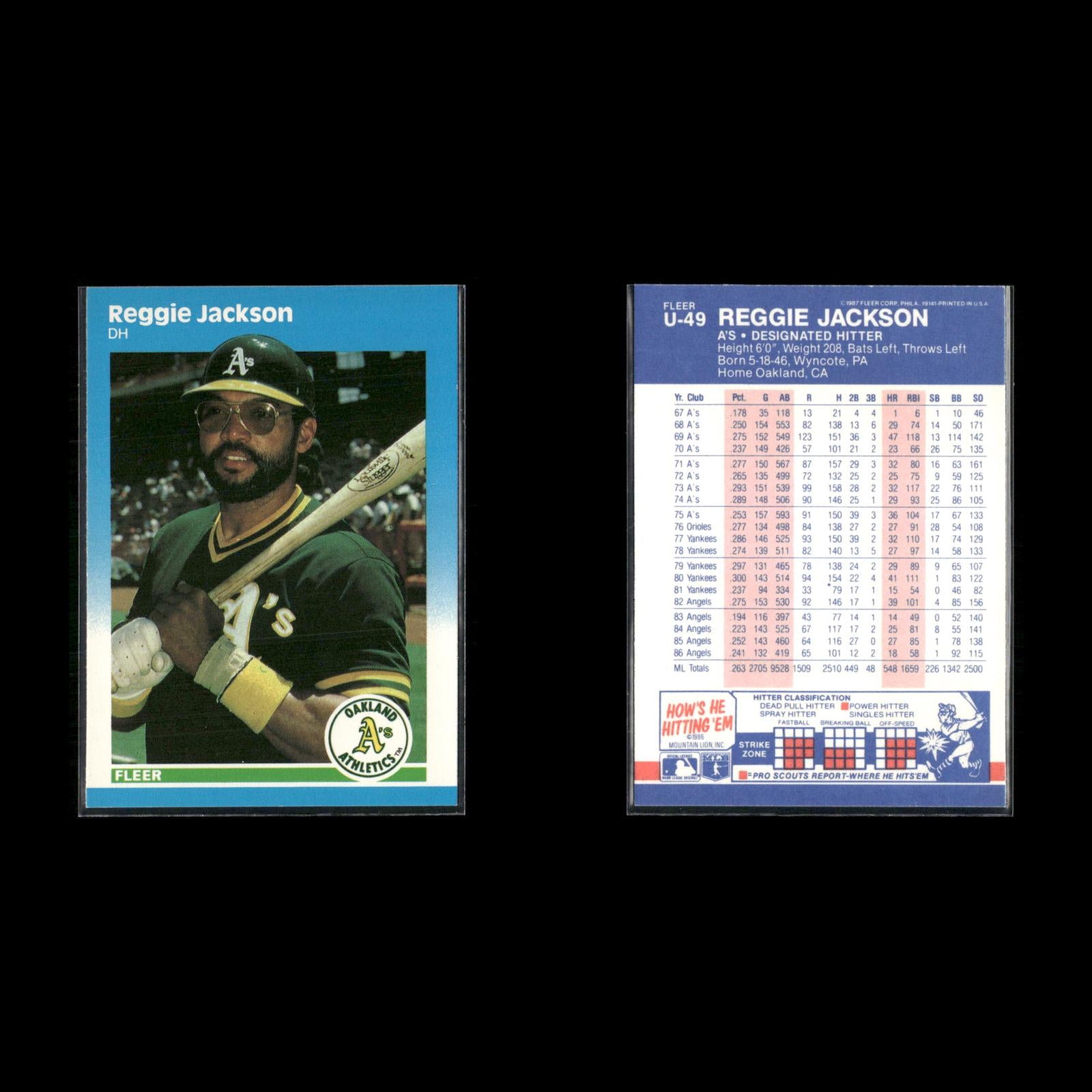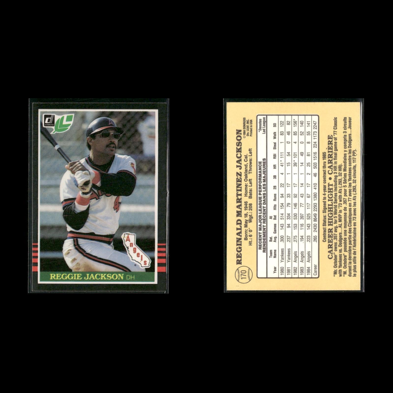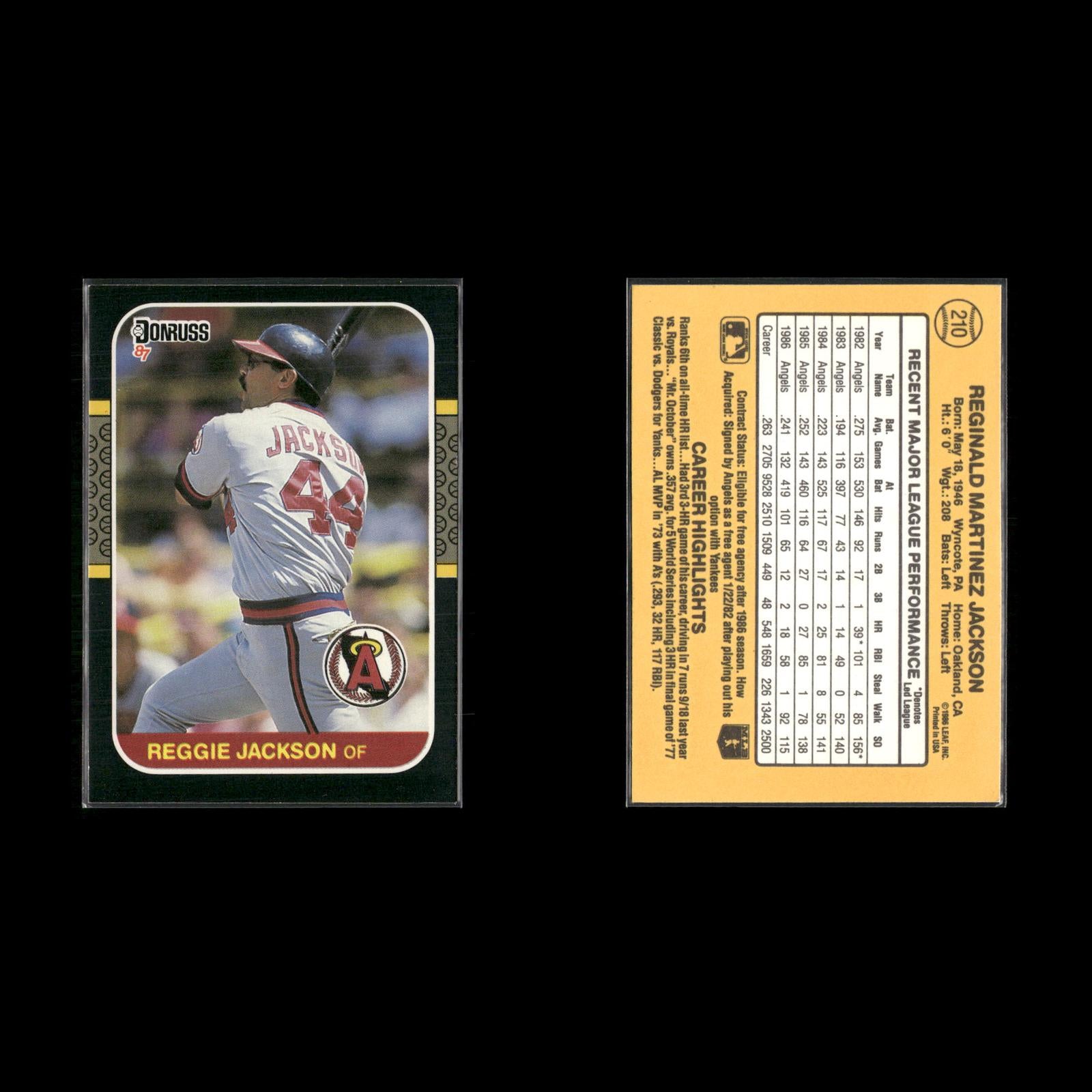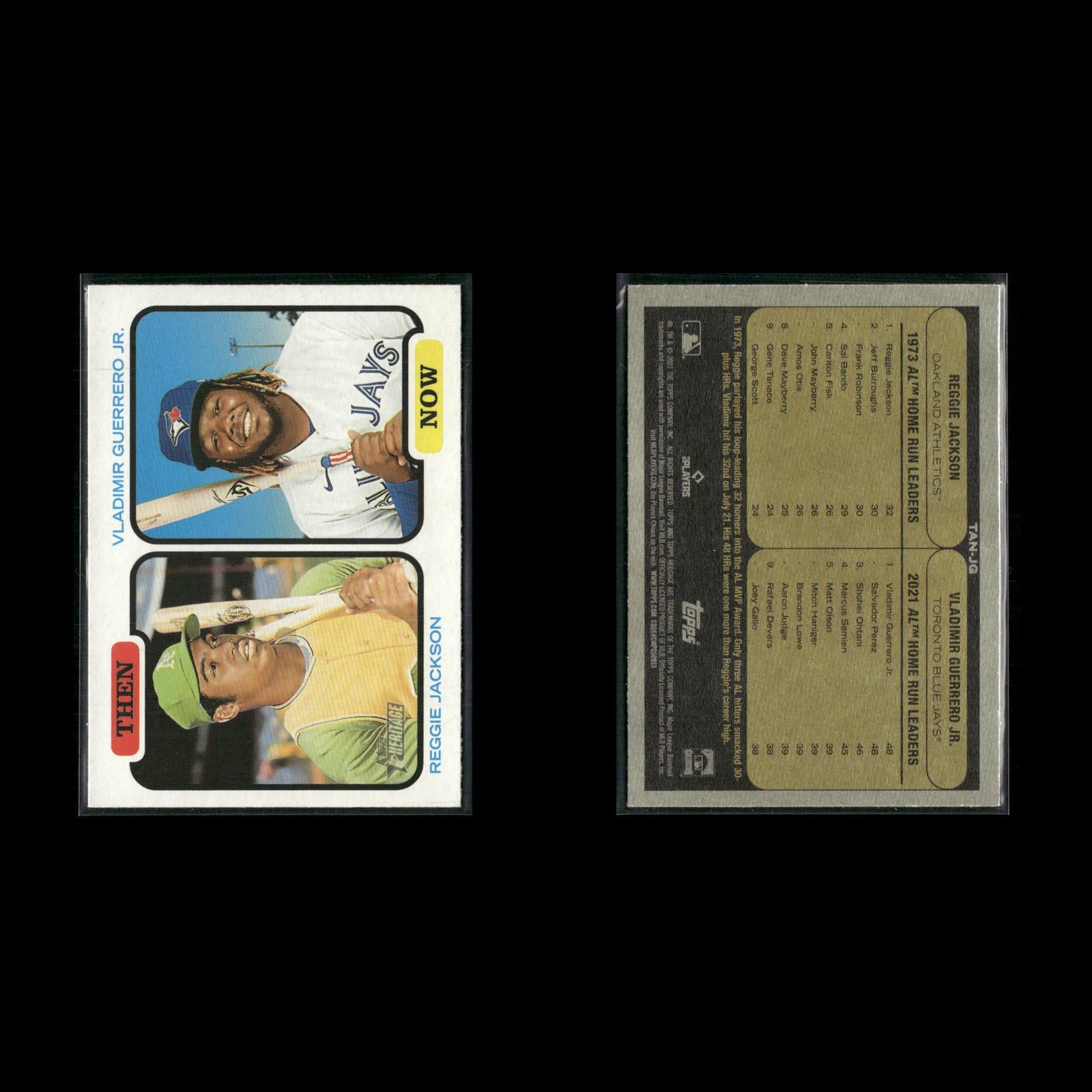 Reggie Jackson / Vladimir Guerrero Jr. UER #TAN-JG 2022 Topps Heritage Then and Now AL Active Career Home Run Leaders (Reggie Jackson / Graig Nettles / Greg Luzinski) ACL #712 1984 Topps Reggie Jackson #201 1987 Leaf California Angels Reggie Jackson #57 1985 Donruss California Angels Reggie Jackson #39 1982 Fleer New York Yankees Reggie Jackson #283 1988 Fleer Oakland Athletics Reggie Jackson #U-49 1987 Fleer Update Oakland Athletics Reggie Jackson #312 1987 Topps New York Yankees