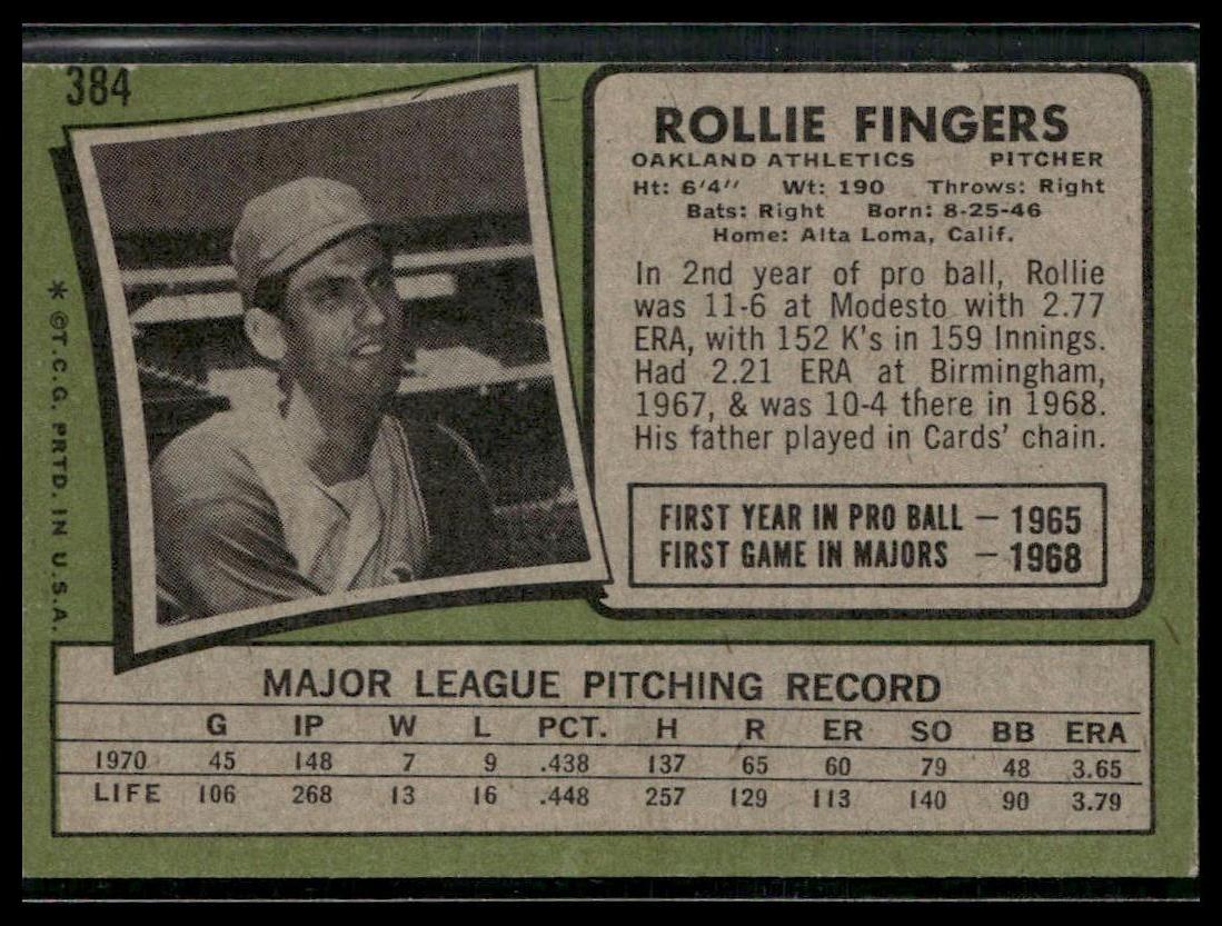 Rollie Fingers #384 1971 Topps Oakland Athletics