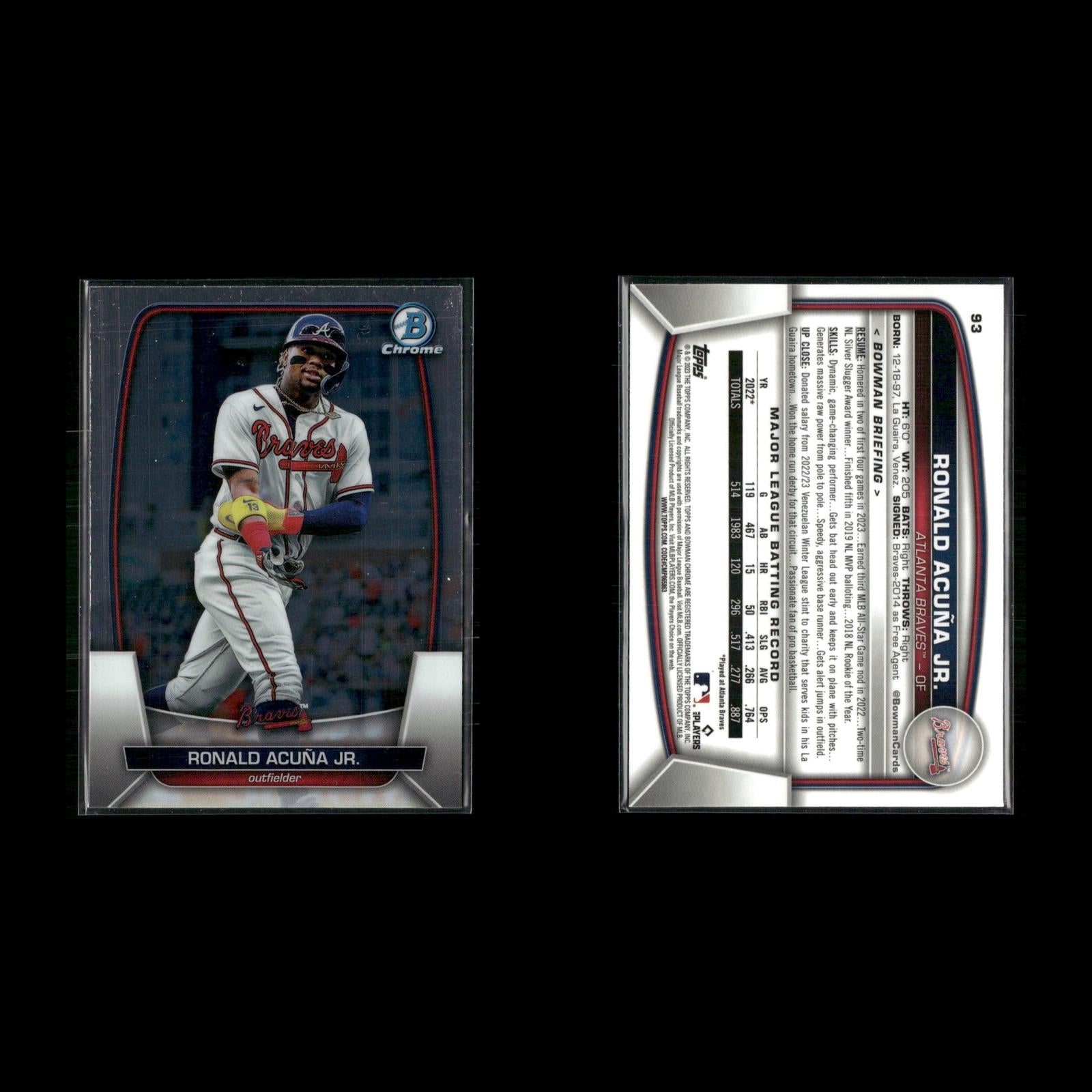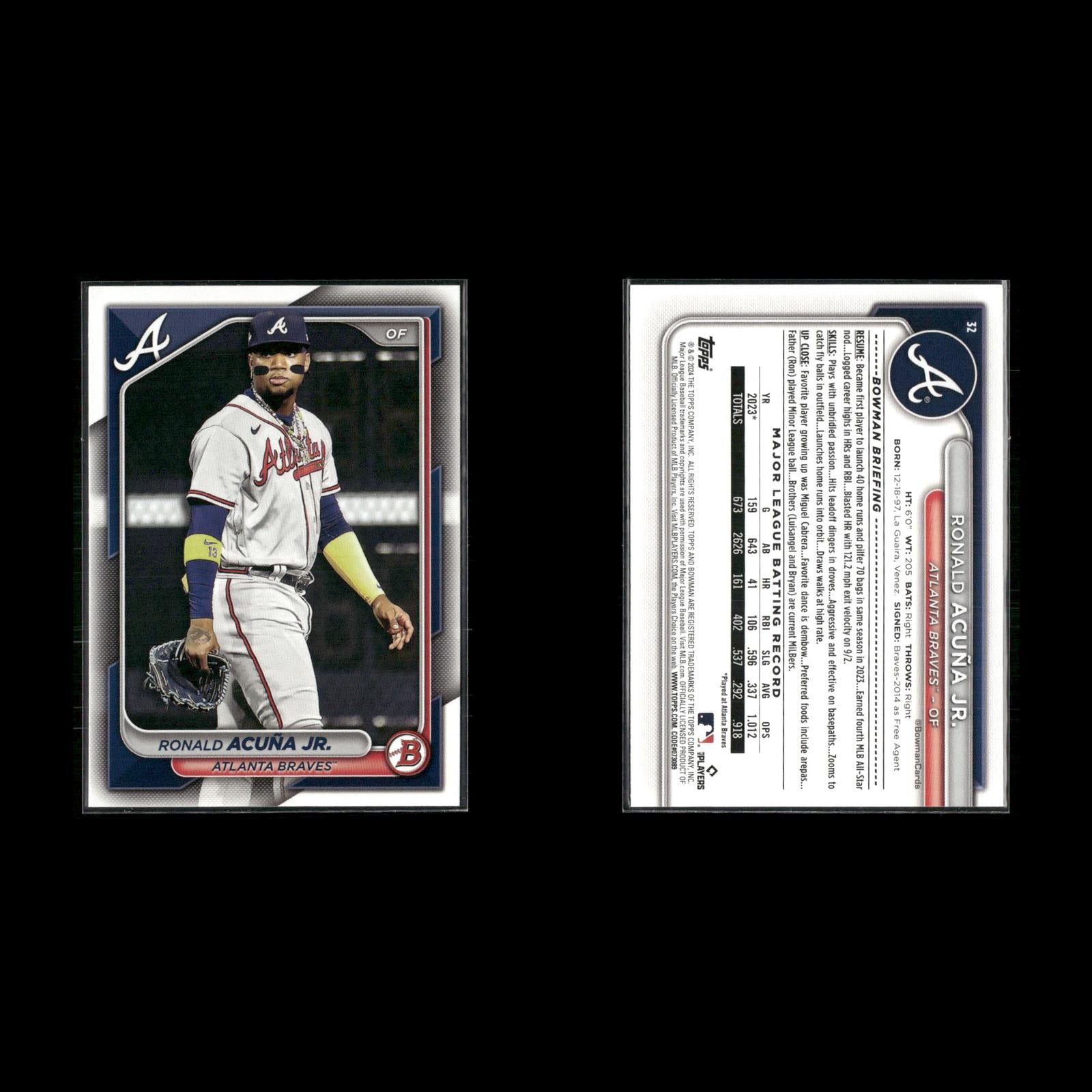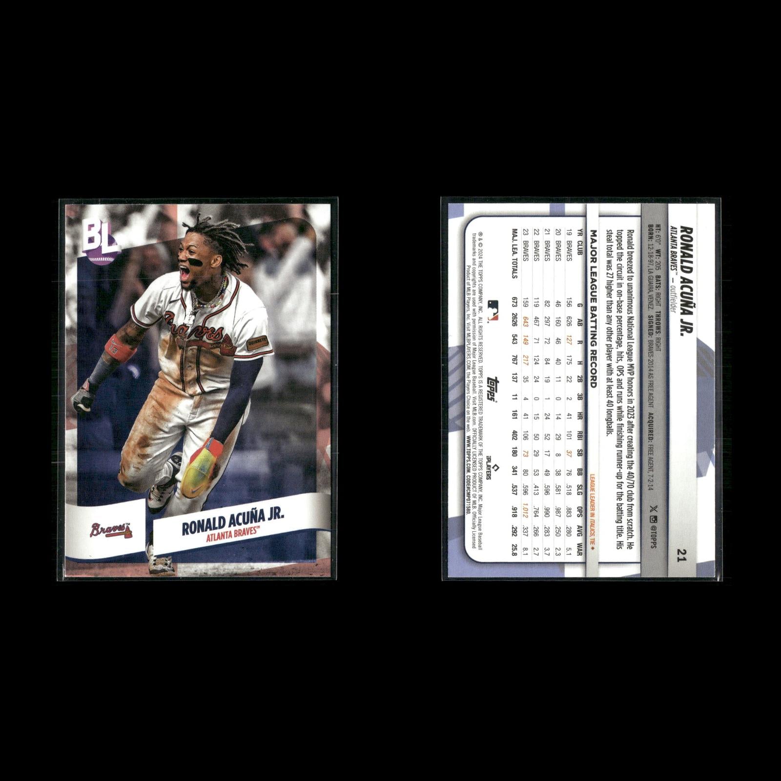 Stolen Base Leaders - 2023 (Esteury Ruiz / Ronald Acuña Jr.) LL #309 2024 Topps Heritage White Border Ronald Acuña Jr. #NAP-10 2024 Topps Heritage New Age Performers Atlanta Braves Ronald Acuña Jr. #32 2024 Bowman Atlanta Braves Ronald Acuña Jr. #93 2023 Bowman Chrome Atlanta Braves Ronald Acuña Jr. #21 2024 Topps Big League Atlanta Braves Ronald Acuña Jr. #T52-45 2021 Topps 1952 Topps Redux Atlanta Braves Ronald Acuña Jr. #207 2025 Topps Rainbow Foil Atlanta Braves Ronald Acuna Jr. #64 2020 Panini Contenders Atlanta Braves