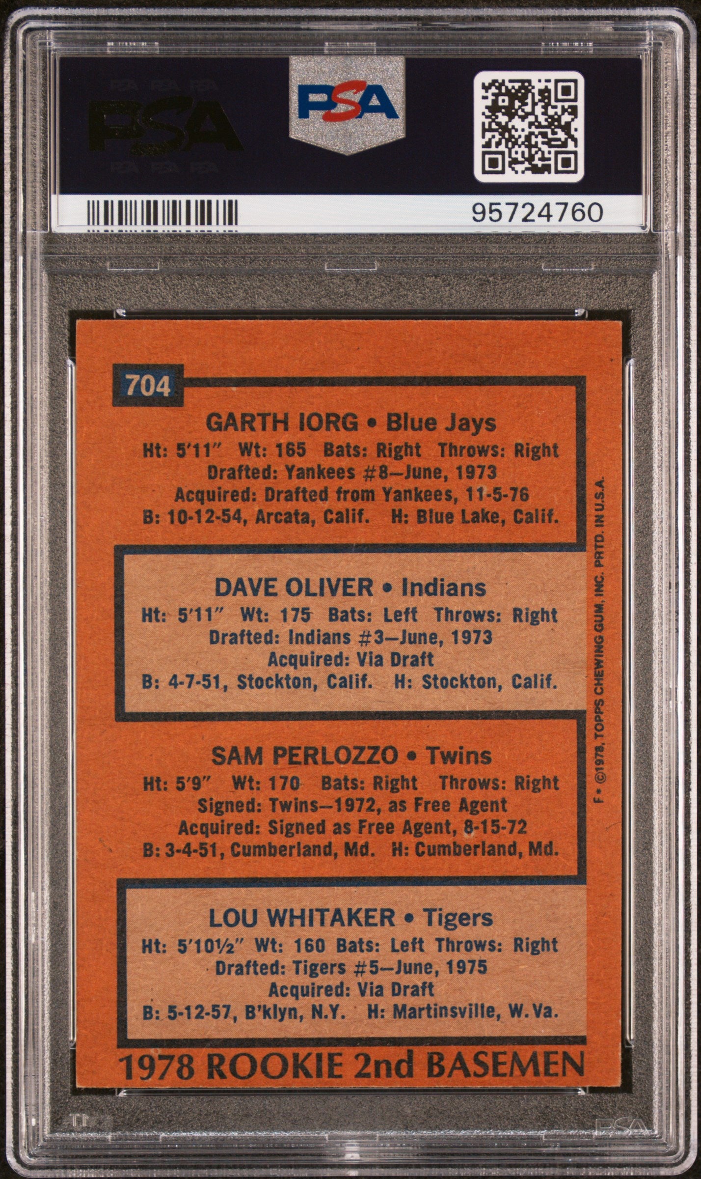 Rookie 2nd Basemen #704 1978 Topps Detroit Tigers PSA 6
