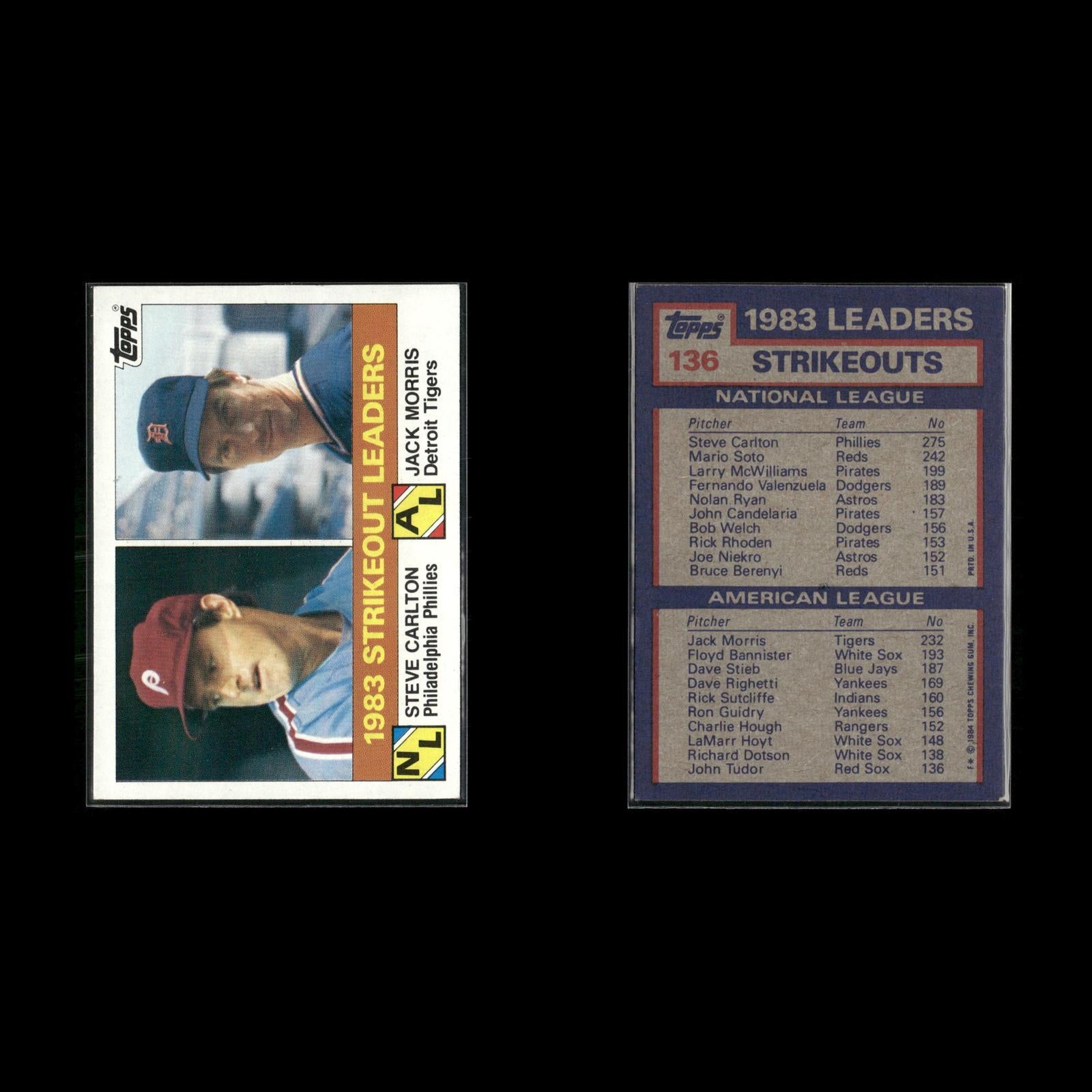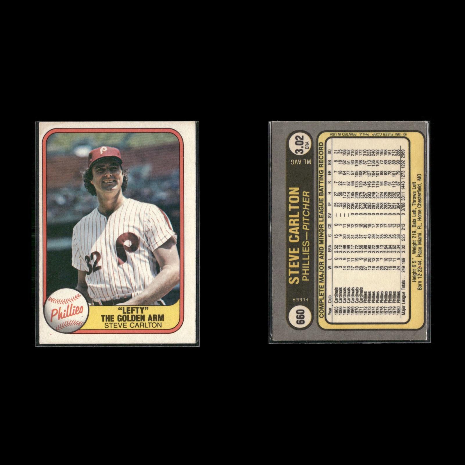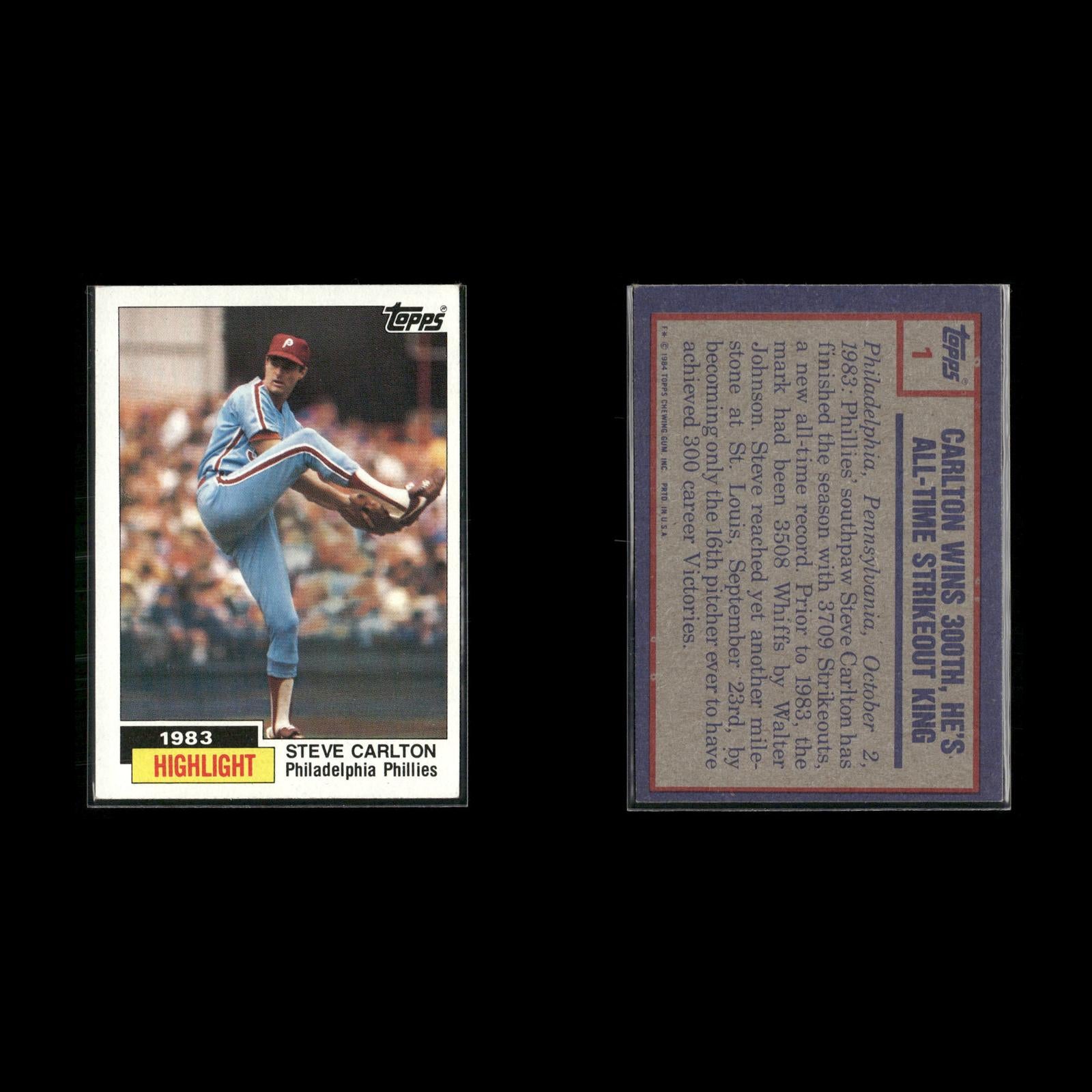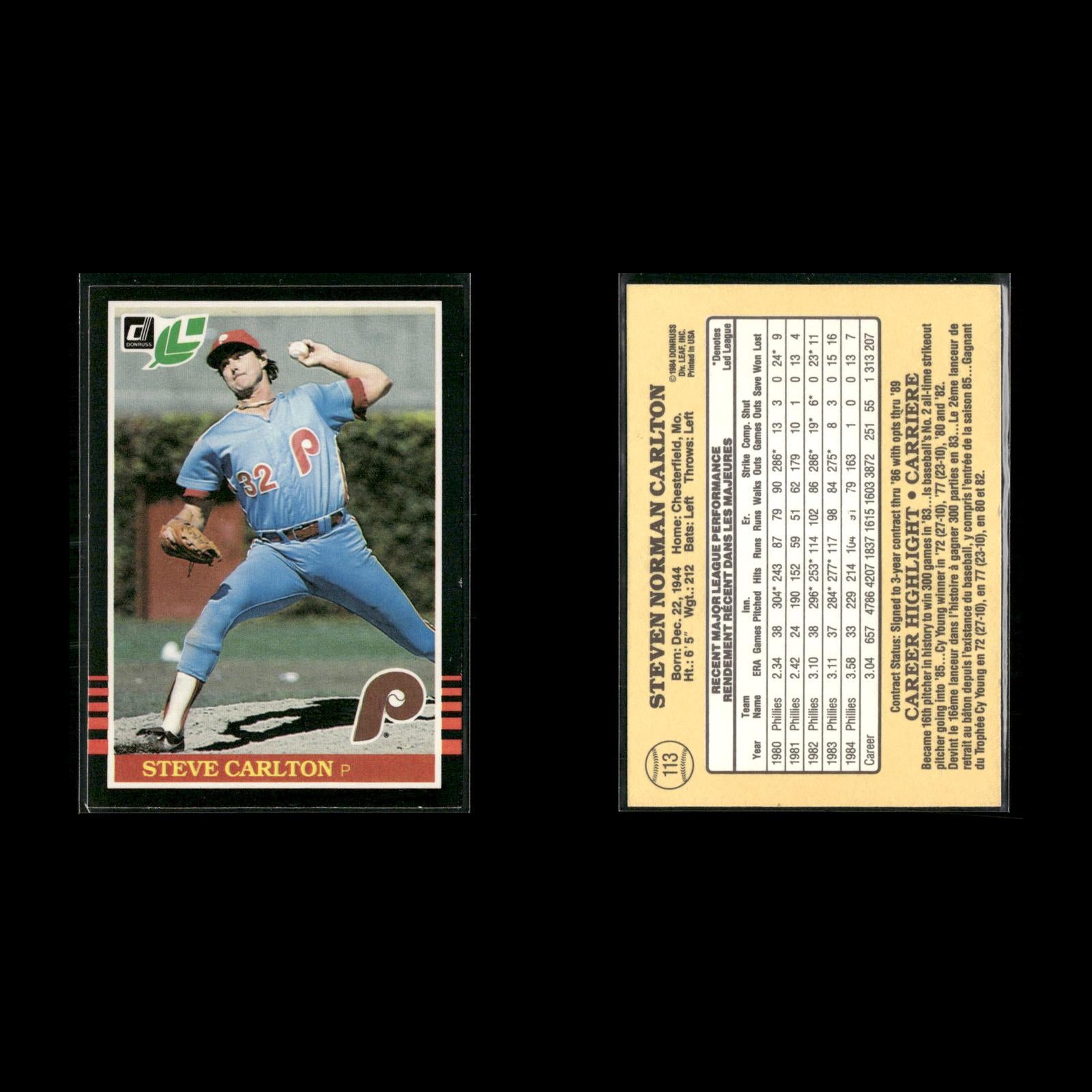 Steve Carlton #360 1985 Topps Philadelphia Phillies Steve Carlton #305 1985 Donruss Philadelphia Phillies Steve Carlton #630 1981 Topps Philadelphia Phillies Steve Carlton #6b 1981 Fleer Philadelphia Phillies Steve Carlton #13B 2015 Topps Baseball History Philadelphia Phillies NL Active Career Victory Leaders (Steve Carlton / Fergie Jenkins / Tom Seaver) ACL #706 1984 Topps Steve Carlton #1 1984 Topps Philadelphia Phillies 1983 Strikeout Leaders (Steve Carlton / Jack Morris) LL #136 1984 Topps Steve Carlton #660b 1981 Fleer Philadelphia Phillies Steve Carlton #617 1987 Donruss Chicago White Sox