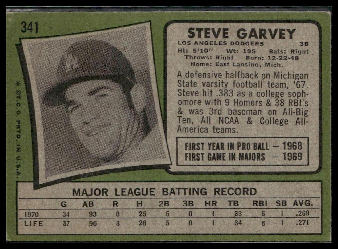 Steve Garvey Rookie #341 1971 Topps Los Angeles Dodgers