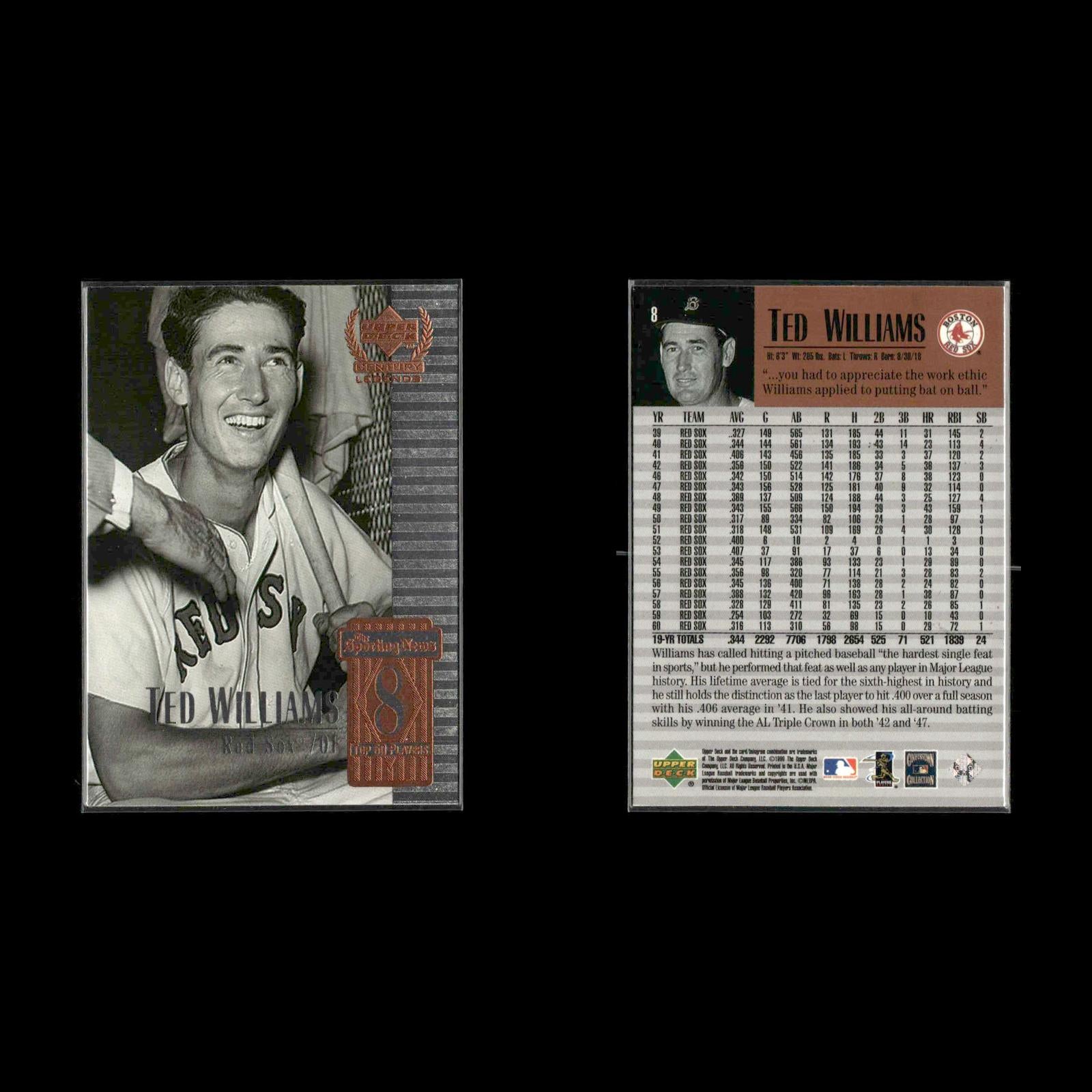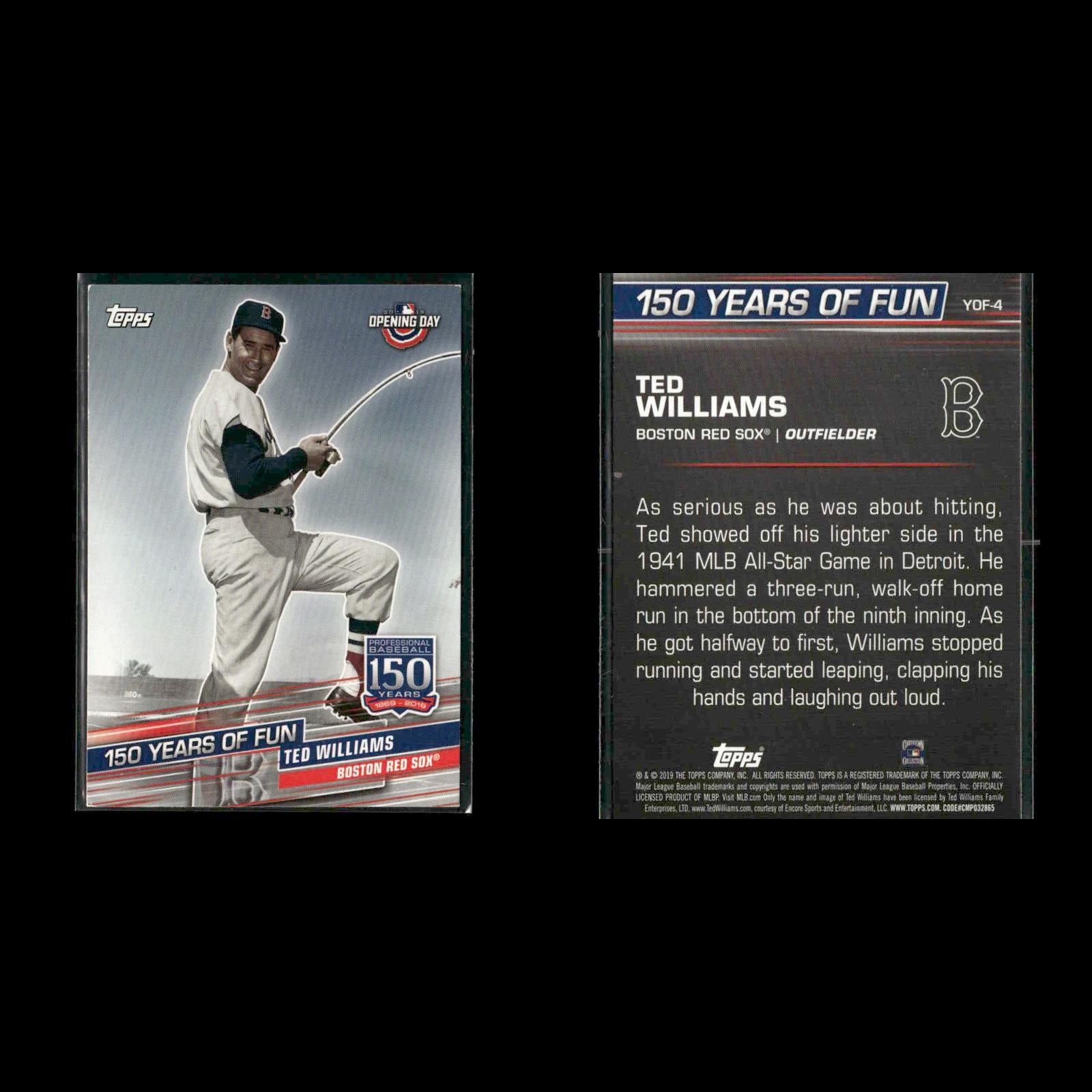 Ted Williams #CNW-2 2021 Topps Update Topps Cards That Never Were Boston Red Sox Ted Williams #95 2022 Topps Allen & Ginter Silver Portrait Boston Red Sox Ted Williams #8 1999 Upper Deck Century Legends Boston Red Sox Ted Williams #241 2005 Donruss Zenith Z-Silver Boston Red Sox Ted Williams #YOF-4 2019 Topps Opening Day 150 Years of Fun Boston Red Sox