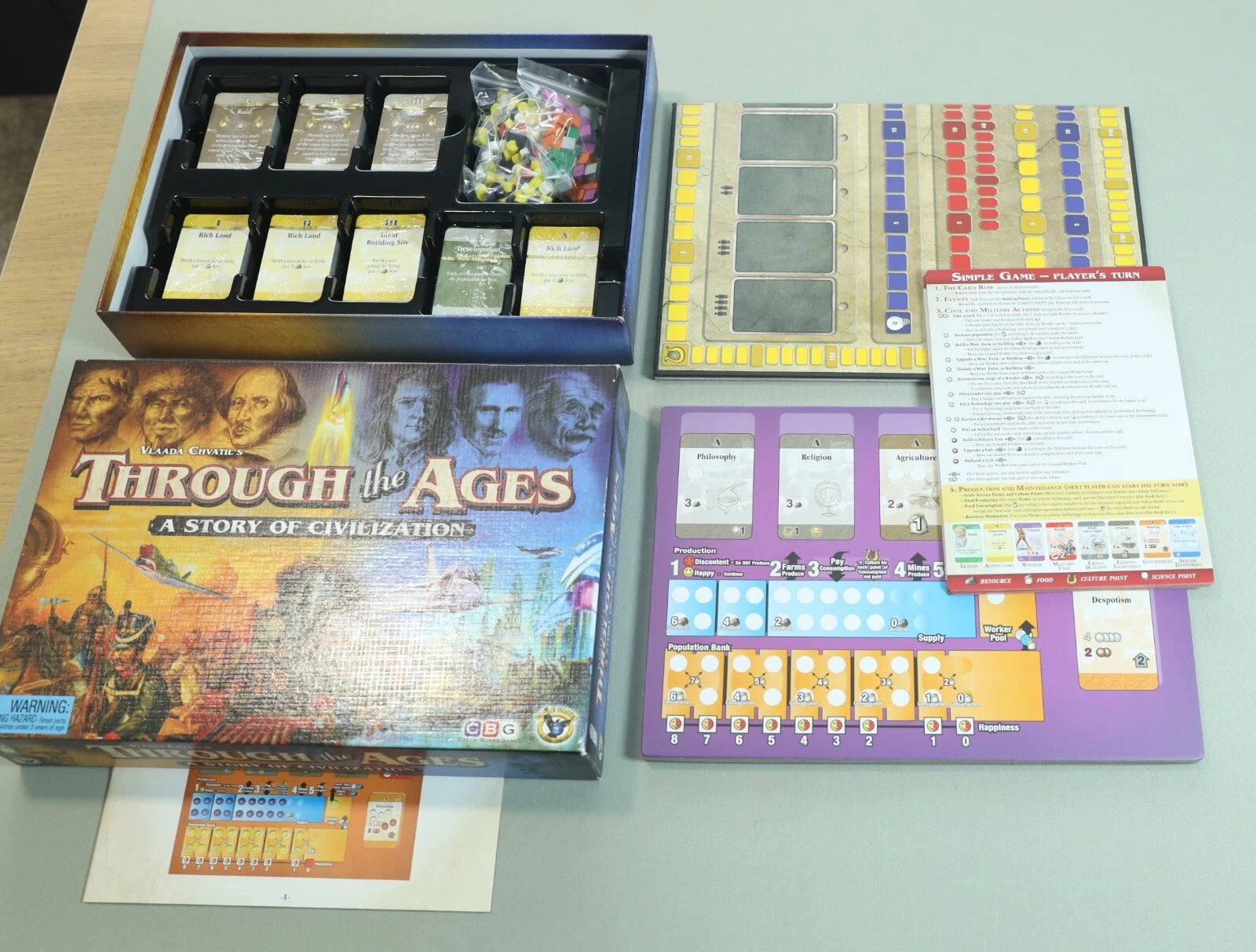 For sale is an unplayed, pristine copy of the 2009 3rd printing of Through the Ages: A Story of Civilization, the acclaimed civilization-building strategy game by legendary designer Vlaada Chvátil.