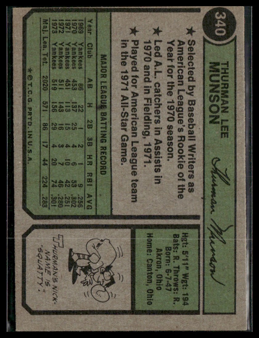 Whether you're a dedicated collector or just starting out with Thurman Munson cards, you've found the perfect card for expanding your deck or showcasing in your collection. At Mr. Mom's, we take pride in offering quality cards from popular games and sports, all carefully handled and ready for their next home. Check out our other listings to find even more treasures for your collection!