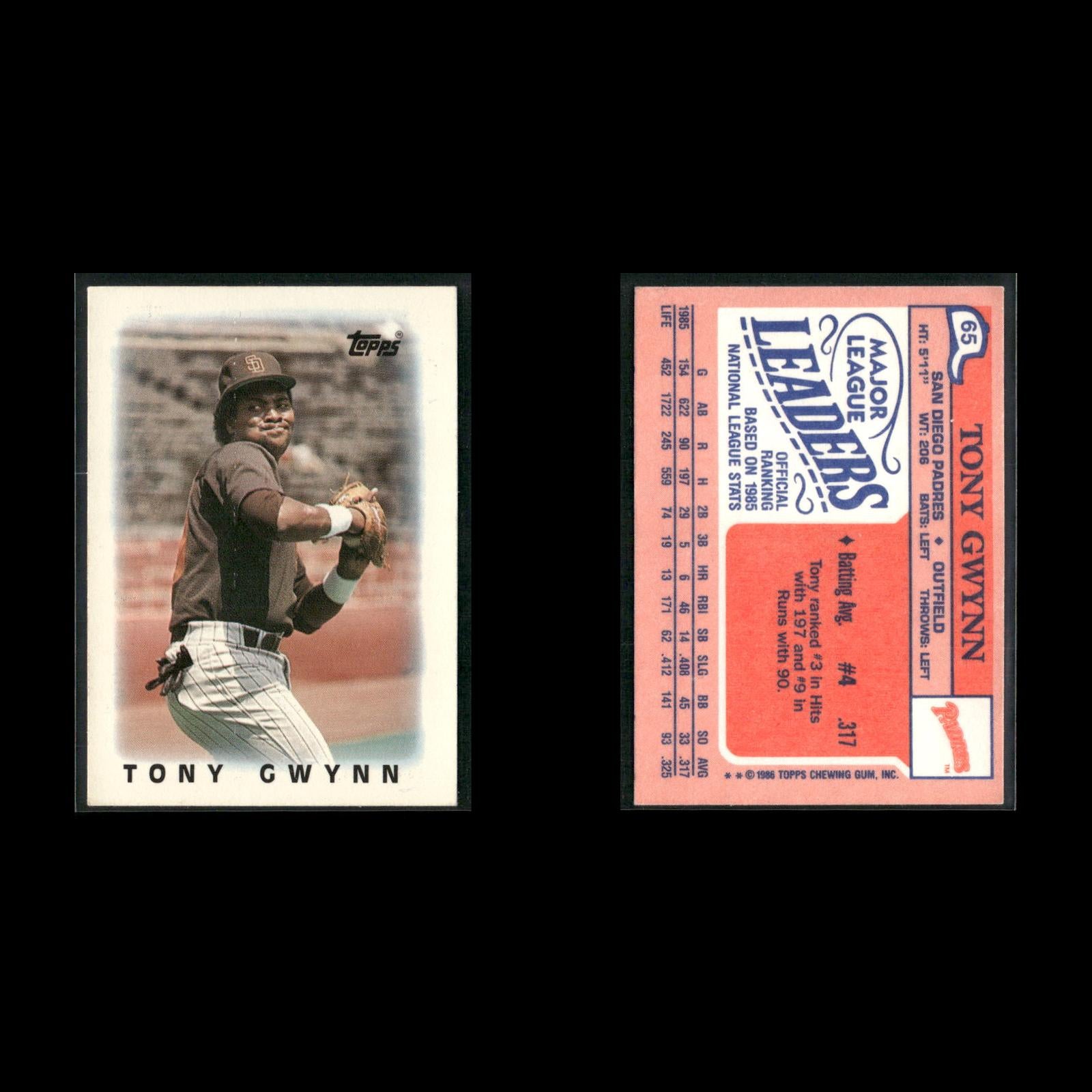 Tony Gwynn #R84 1999 UD Ionix San Diego Padres Tony Gwynn #61 1996 Finest San Diego Padres Tony Gwynn #305 1989 Fleer San Diego Padres Tony Gwynn #35 1998 Pacific Revolution Showstoppers San Diego Padres Tony Gwynn #6 1989 Donruss San Diego Padres Tony Gwynn #80 2007 SP Legendary Cuts San Diego Padres Tony Gwynn #65 1986 Topps Major League Leaders Minis San Diego Padres Tony Gwynn #270 1992 Topps Micro San Diego Padres Tony Gwynn #255 1991 Upper Deck San Diego Padres Tony Gwynn #570 1989 Topps San Diego Padres Tony Gwynn #164c 1988 Donruss San Diego Padres Padres Leaders #699 1988 Topps San Diego Padres