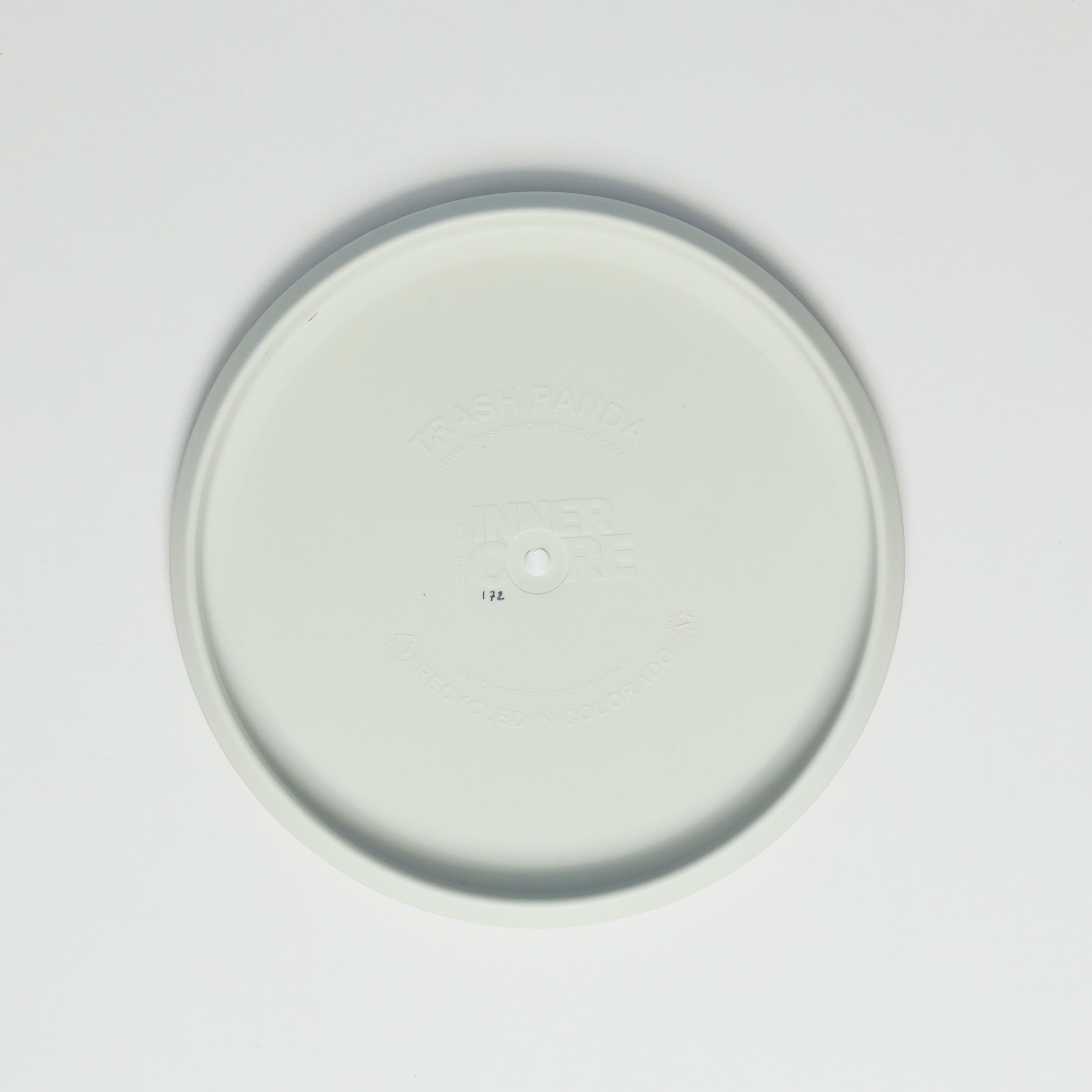 Trash Panda's goal in making the Inner Core was to make a premium putter that would fly straight for everybody without using a single additive, and while remaining 100% recycled and recyclable. The color of any particular run of the Inner Core is based on whatever the regrind / trash was we received for the plastic blend. The color chooses the disc, rather than using additives to color the disc. The Inner Core does not have a hot stamp because of the waste that is created in the stamping process. This leaves the surface clean without hurting the environment.
