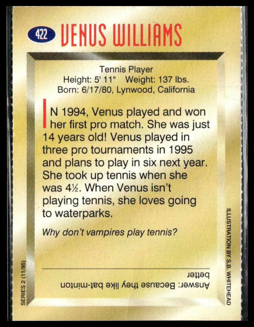 Venus Williams #422 1995 Sports Illustrated for Kids