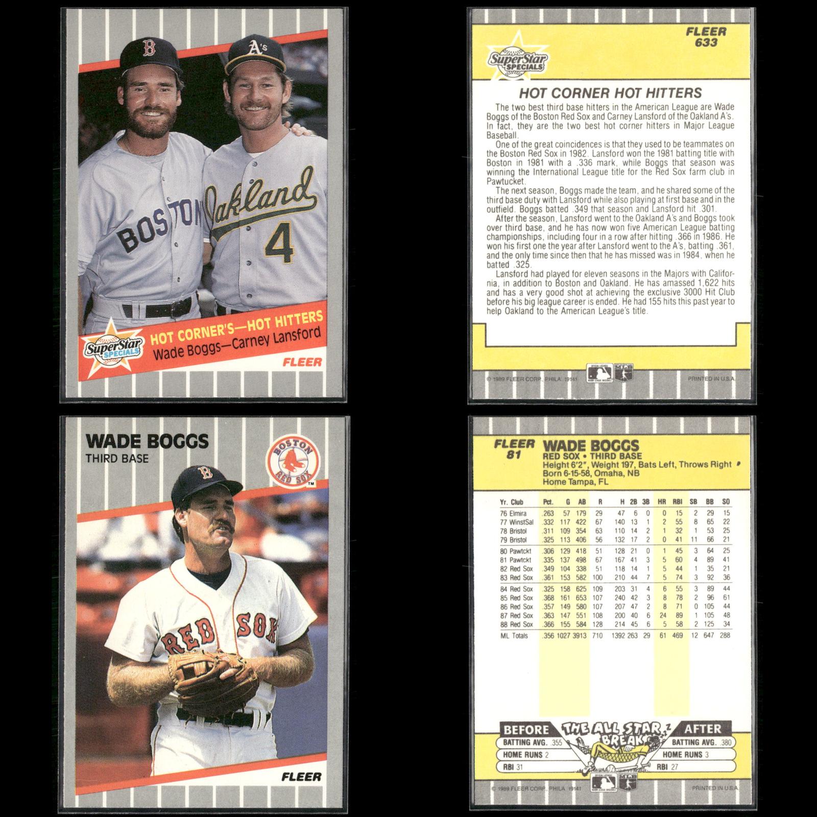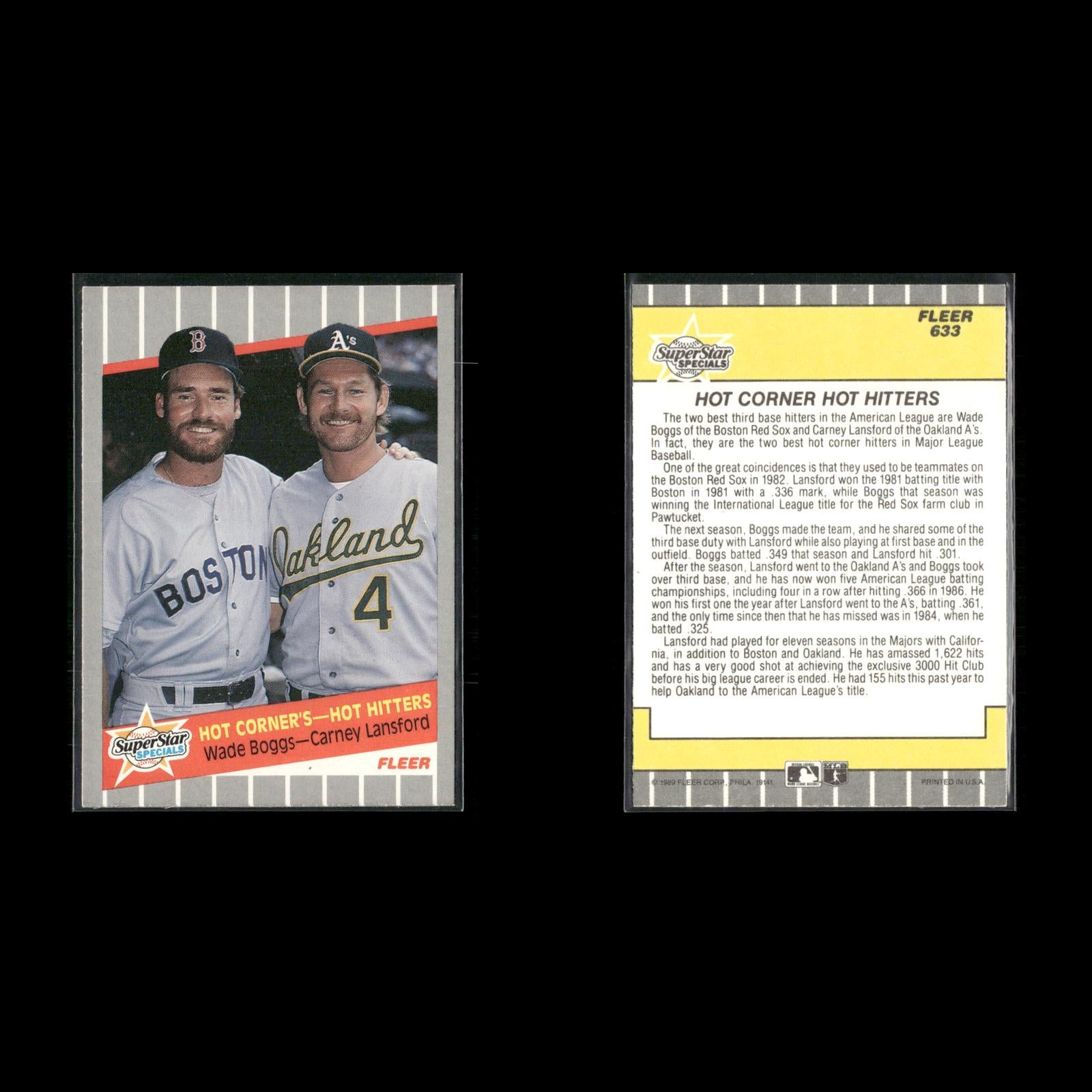 Hot Corner's -- Hot Hitters (Wade Boggs / Carney Lansford) SSS, CPC #633 1989 Fleer