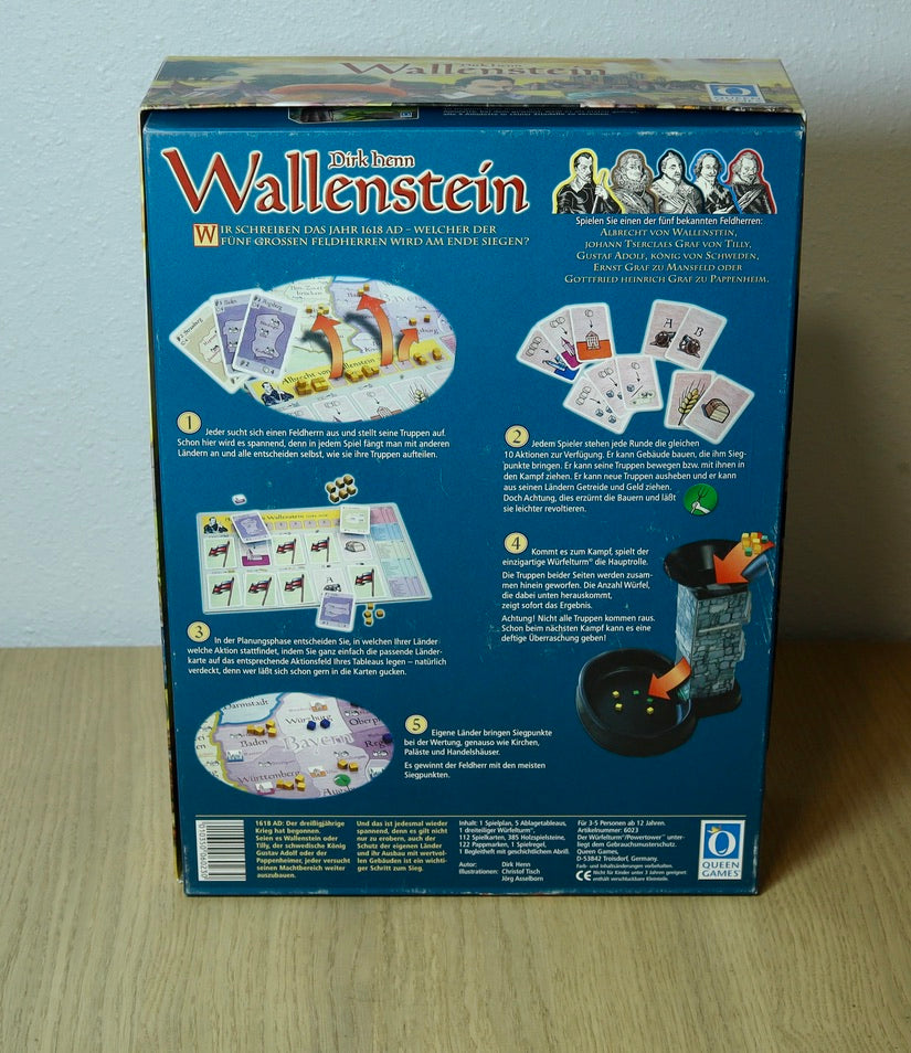 This listing is forWallenstein, a historical strategy board game designed by Dirk Henn and published by Queen Games in 2012. The game is unplayed and complete, with all components neatly sorted and in excellent condition. Known for its innovative cube tower mechanic and deep strategic gameplay,Wallensteinimmerses players in the Thirty Years’ War as rival warlords vie for control of Central Europe.