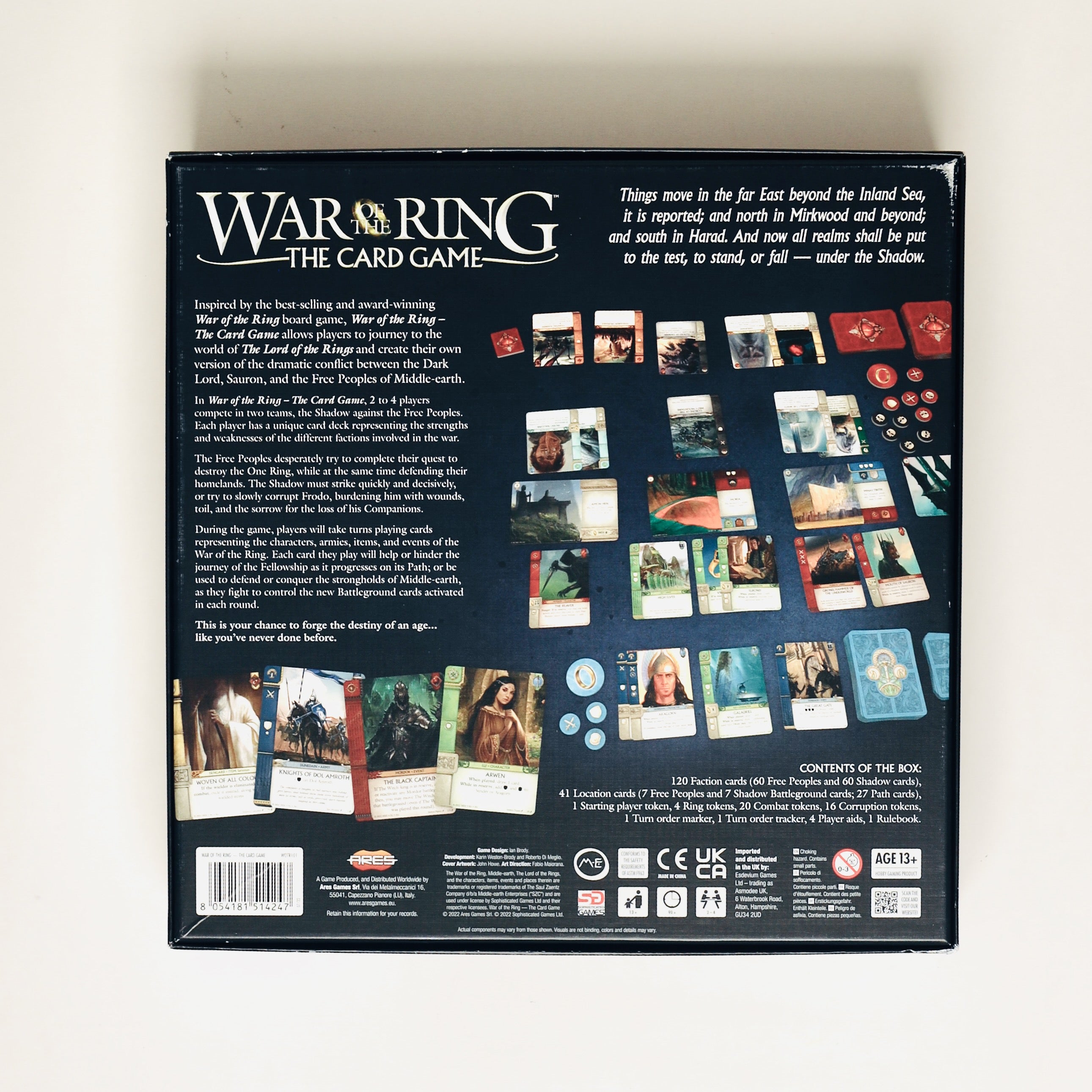 About the Game: In War of the Ring: The Card Game, players control the Free Peoples or Shadow forces in an epic battle for Middle-earth. Tactical card play, character development, and thematic depth bring Tolkien’s world to life in a compact format.