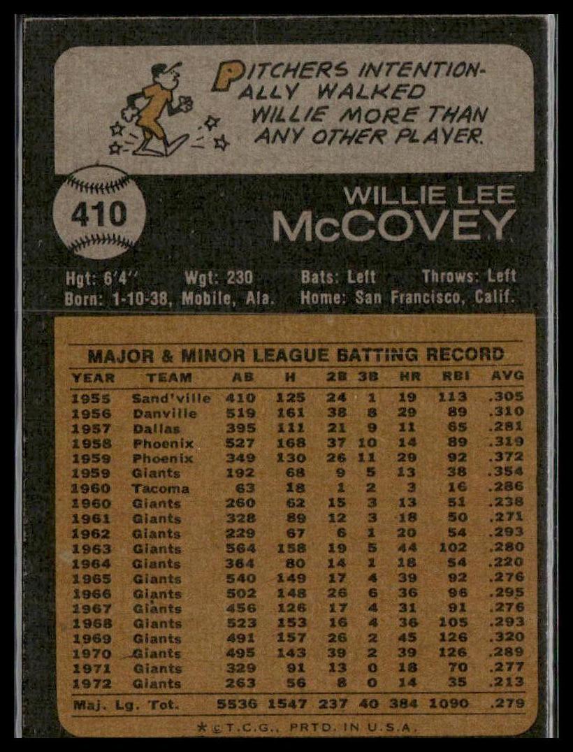Willie McCovey #410 1973 Topps San Francisco Giants