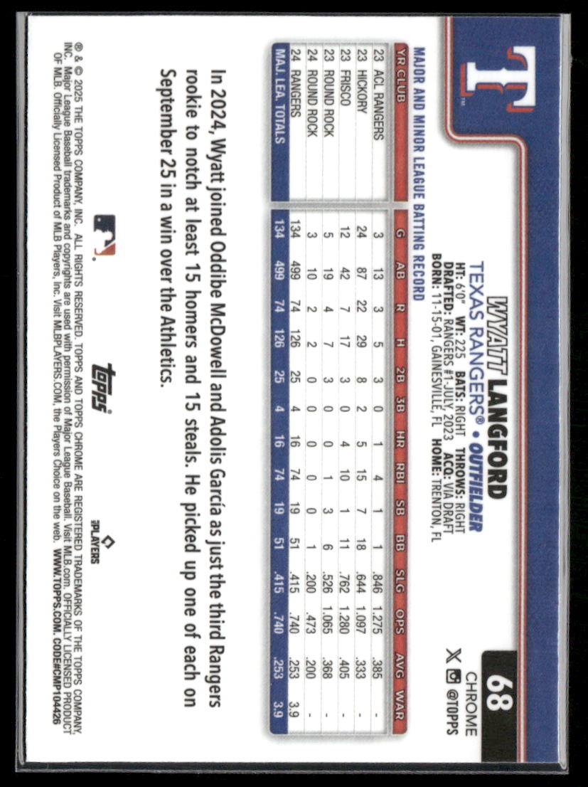 Whether you're a dedicated collector or just starting out with Wyatt Langford cards, you've found the perfect card for expanding your deck or showcasing in your collection. At Mr. Mom's, we take pride in offering quality cards from popular games and sports, all carefully handled and ready for their next home. Check out our other listings to find even more treasures for your collection!
