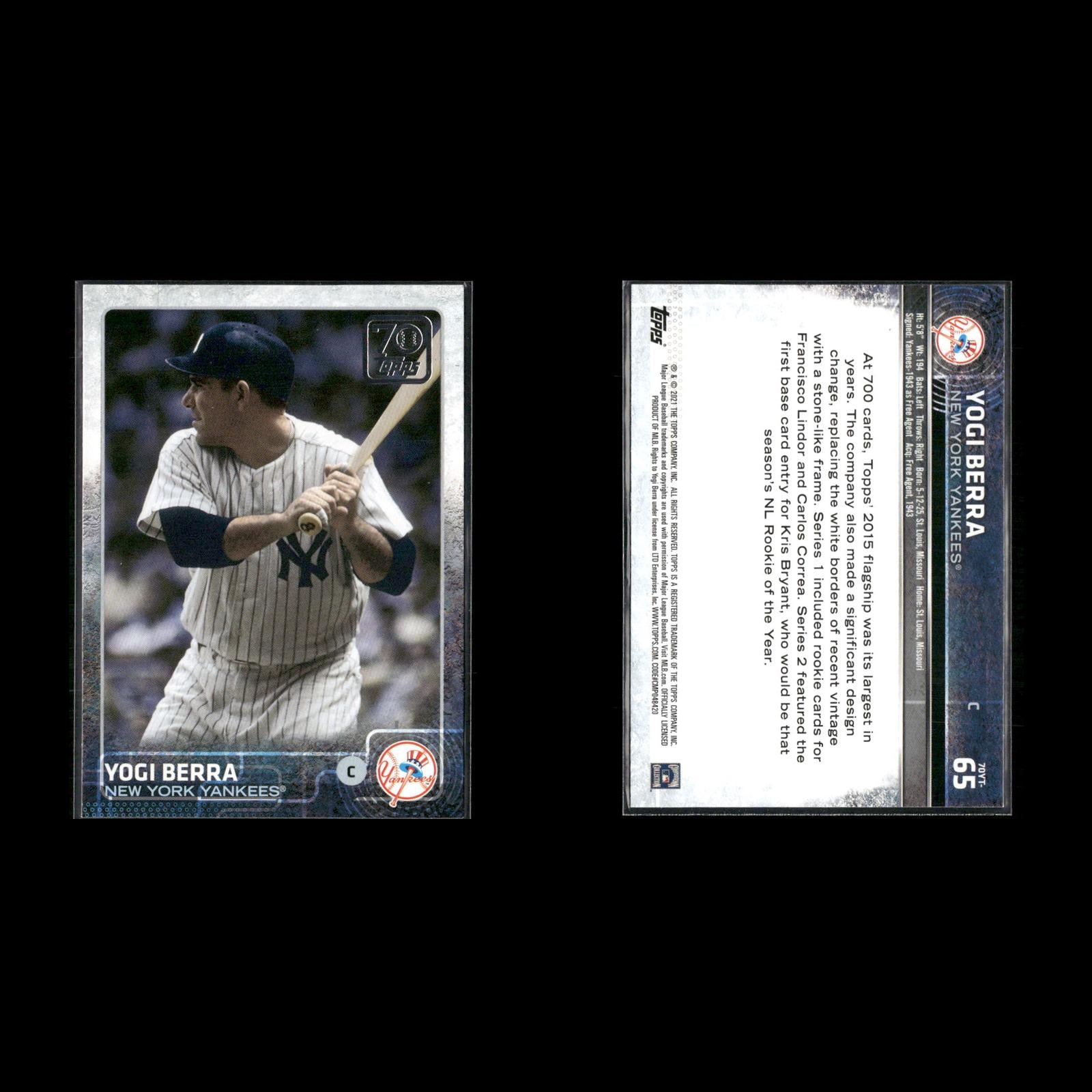 Yogi Berra #70YT-65 2021 Topps Update 70 Years of Topps Baseball New York Yankees Yogi Berra #7 1990 Pacific Legends New York Yankees Yogi Berra #155 1985 Topps New York Yankees 1951 MVPs (Yogi Berra / Roy Campanella) MVP #189 2024 Topps Heritage Yogi Berra #172 2024 Stadium Club New York Yankees